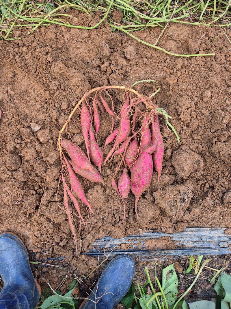 고구마에 대해 잘은 모르지만 경험을 말씀드리면 고구마 싹이 왕성하면 고구마는 생식생장을 하지 않고 영양생장 즉 뿌리보다 줄기에 영양이 전달되어 고구마 뿌리에 고구마가 적게 열리거나 않열리는 현상이 발생합니다. 줄기가 왕성할때 고구마 성장억재를 살포하여 줄기 자람을 억재시키고, 바닦에 부직포를 깔아서 줄기 뿌리내림을 차단 하기도 합니다. 고구마 줄기가 왕성할 시기는 여름 장마철에 왕성하게 자랍니다 이때 수세를 잡지못하면 고구마 농사는 기대치 이하로 됩니다. 심을때 땅 토질을 판단해서 퇴비등을 최소화 하여 줄기성장 억재를 막는 고민을 해야한는 관심이 고구마의 기본이라고 생각됩니다.