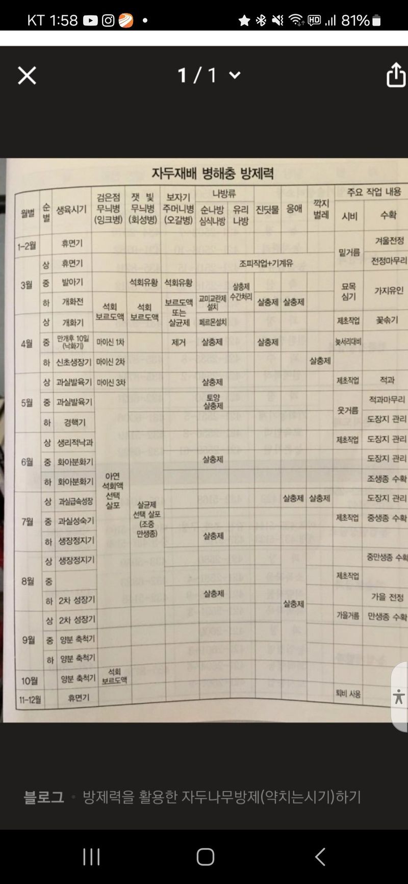 이번주말 자두복숭아에 기계유제살포 2주후 석회유황합제