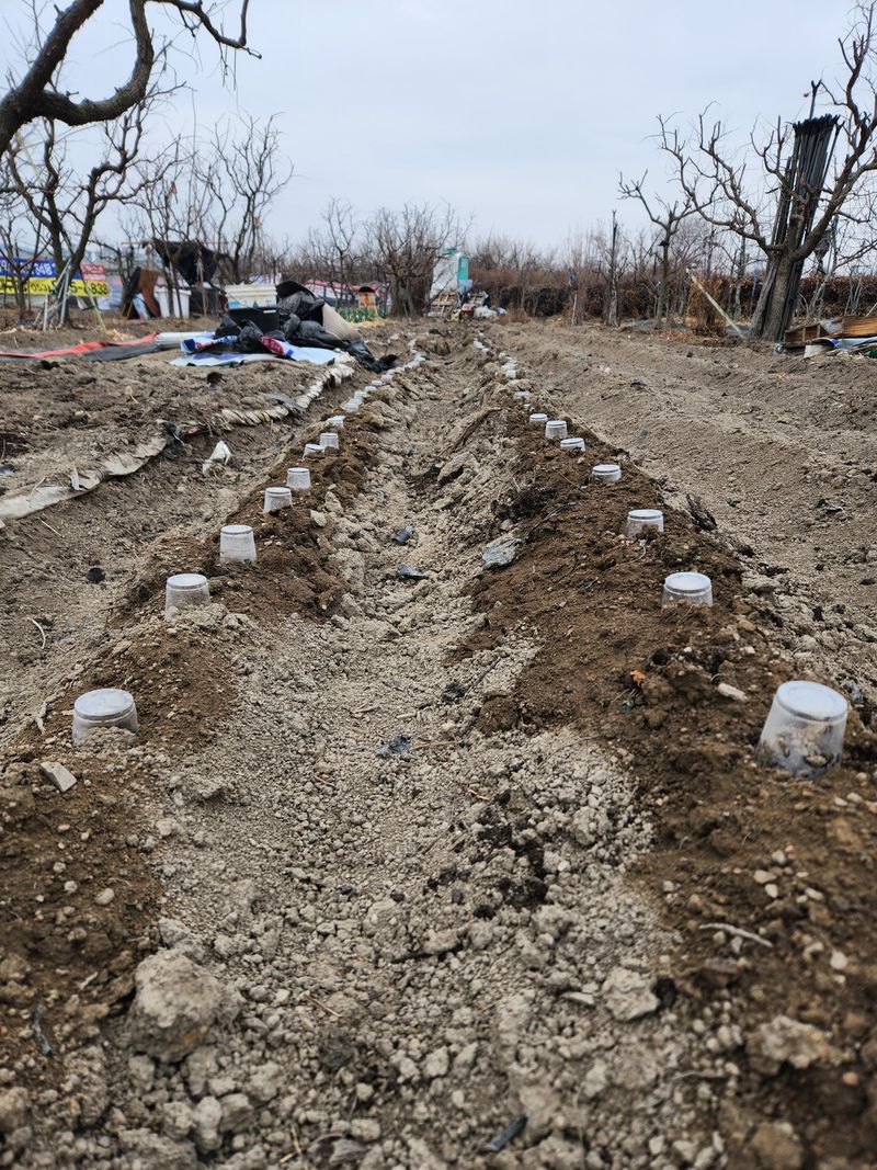 저는비닐피복하니깐 가뭄이더더욱심해져서 비닐피복하지않고씨앗넣고투명컵으로 설치한모습구경하세요