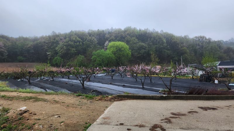 뽑아도 뽑아도 끝없이 자라나는 풀과의 힘겨운 싸움 대신 소중한 나무에 해가 될까 염려스러운 제초제 대체로 검은 제초 매트로 밭 전체를 빈틈없이 덮었다 마치 밤하늘의 별처럼 흩뿌려진 돌멩이(벽돌)들은 혹여나 강풍에 매트가 날아갈까 노심초사하는 간절한 마음을 담고 있다