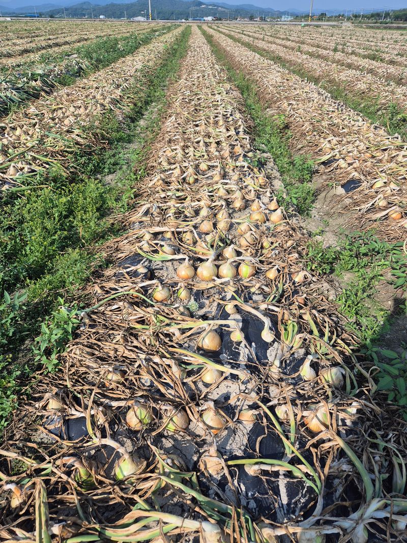 마늘 양파 고구마 콩등등 도복 또는 잎이 누렇게 착색이되어야 그때부터 급속도로 구 또는 열매가 비대 하는걸로 알고있어요