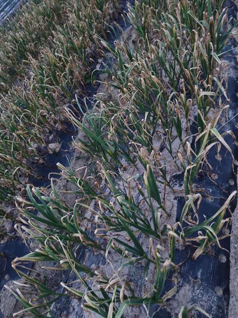 마늘은 수확 15일전까지는 꾸준히 관수를해줘야 하는데 너무 가물면 잎이 일찍 마릅니다