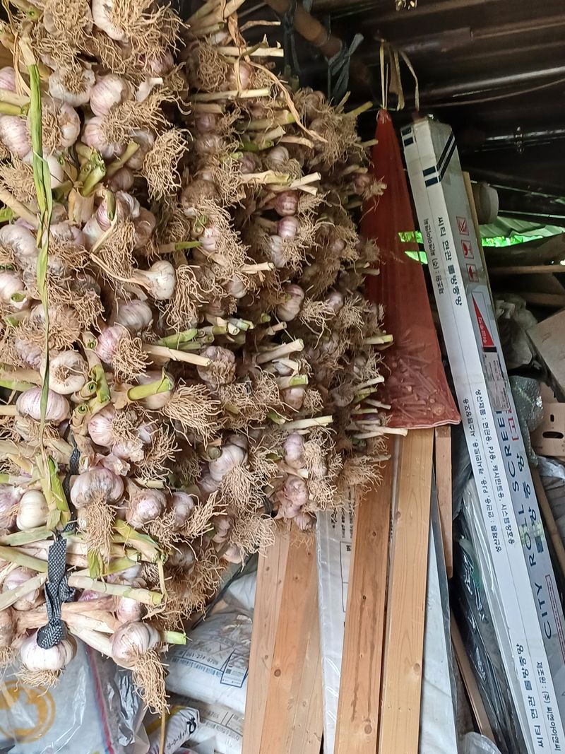 막사에널어두었든 마늘을갈무리하면서