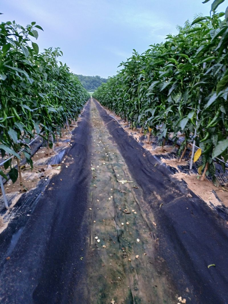 저에. 4월초 부직포. 텃널고추 구경 하세요. 고추가 너무 많이. 달려요.