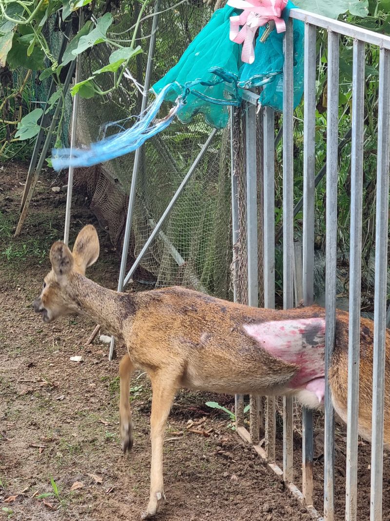 고구마 잎 먹으러 왔다가 휀스에 껴서 괭한 고라니!