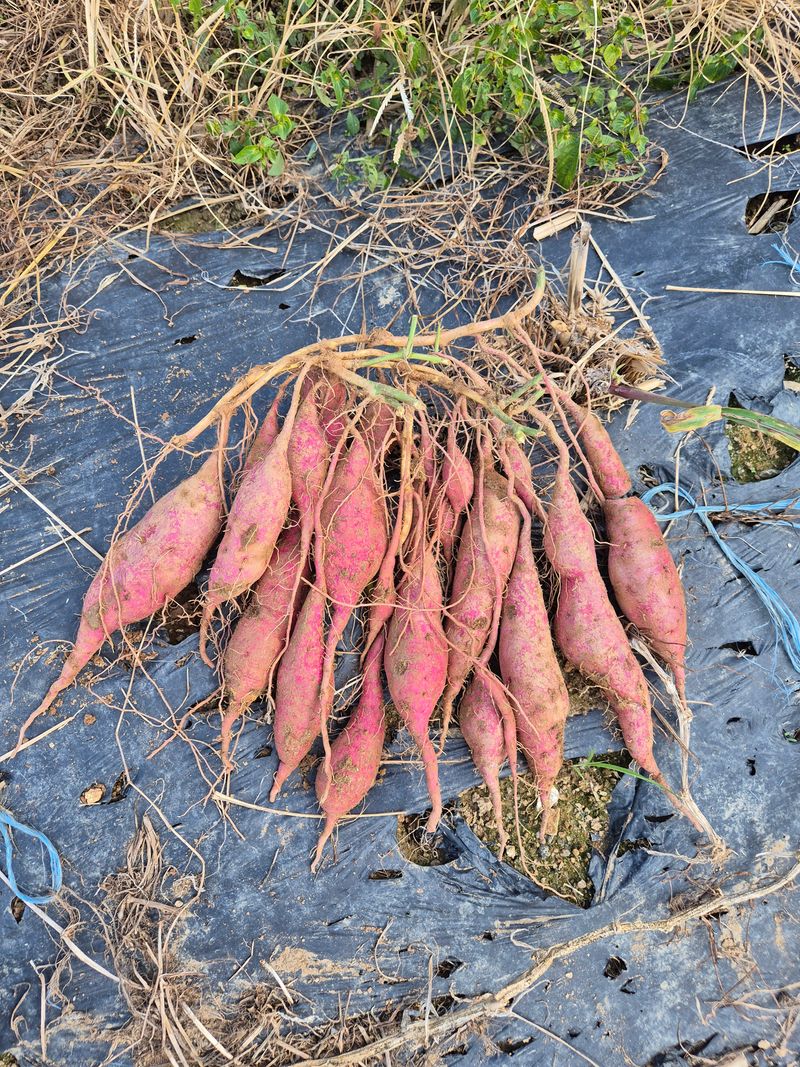 고구마는 일찍심으면 굵게 적게 달리고 늦게심으면 잘게 많이 달립니다 남들심는것보다 한달늦게 한번 심어보세요 참고하세요