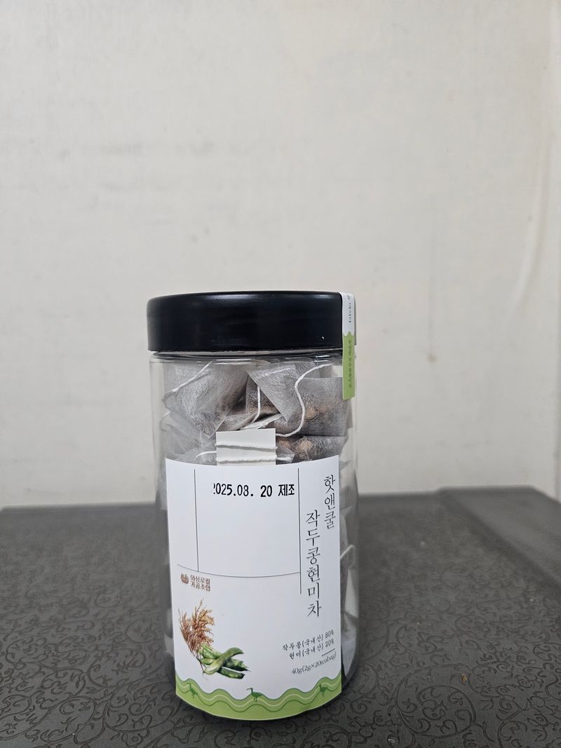 2g티백을 500cc 찬물에 넣어 잠시기다리면 맛난 작두콩현미차가 됩니다.