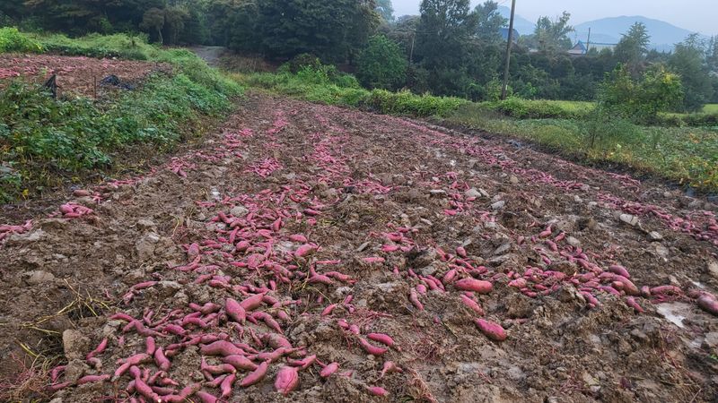 어제는 고구마를 캐는데 얼마나덥던지 땀을 쪽흘리면서 캤어요.