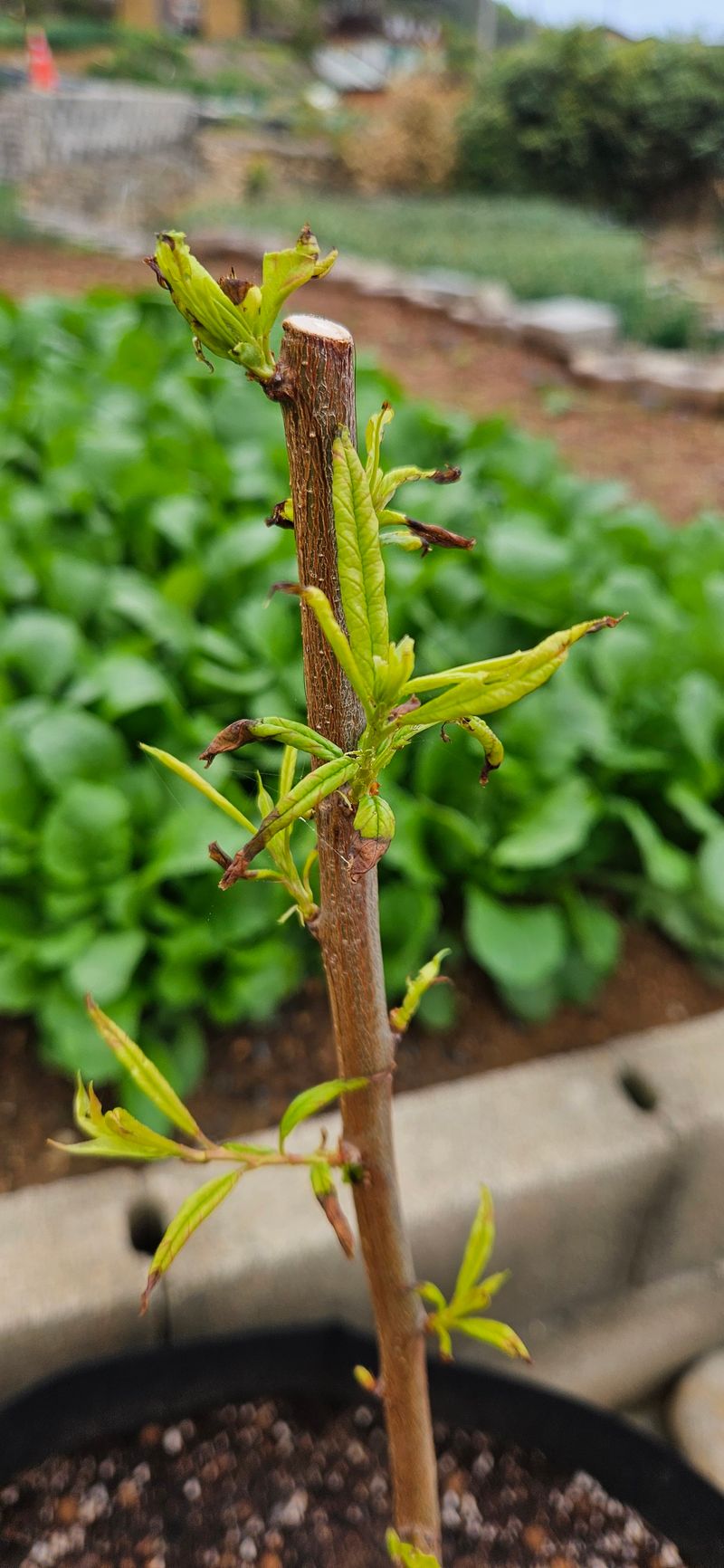 피자두 묘목을사다 싶었는데 새싹끝이 까맣게 변하는데 무엇이 문제인 궁금해서 여쭤 봅니다