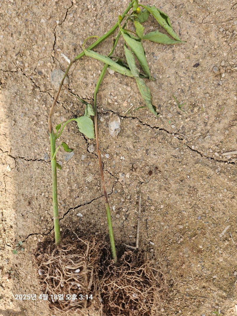 줄기 중간이 말라가며 서서히 죽어가는 증상은 시들음병과 관련이 있을 수 있습니다. 시들음병은 주로 곁뿌리 부분으로 병원균이 침입하여 발생하며, 병든 부위는 암갈색을 띠고 괴저가 생깁니다. 병이 진전되면 지제부의 둘레가 썩고, 병든 뿌리나 줄기는 검게 변하며 껍질이 쉽게 벗겨집니다. 이 병은 지상부위에 직접적인 피해를 주지 않지만, 과실의 크기와 품질에 영향을 미칠 수 있습니다. 예방을 위해 연작을 피하고, 토양의 산도를 조절하며, 병원균 밀도를 줄이는 방법을 고려해보세요. 더 자세한 정보는 아래의 도감에서 확인하실 수 있습니다. https://farmmorning.com/disease-pest/Y3JvcC1kaXNlYXNlLXBlc3Q6MjI1