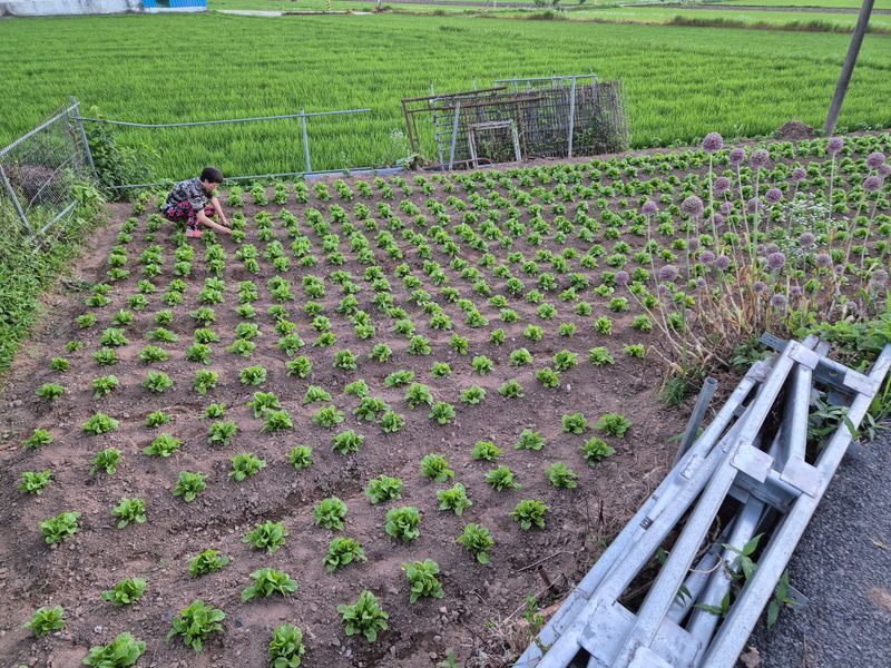 상추밑 뿌리가까이 비닐을 조금제거하고 수분을 충분히 주세요