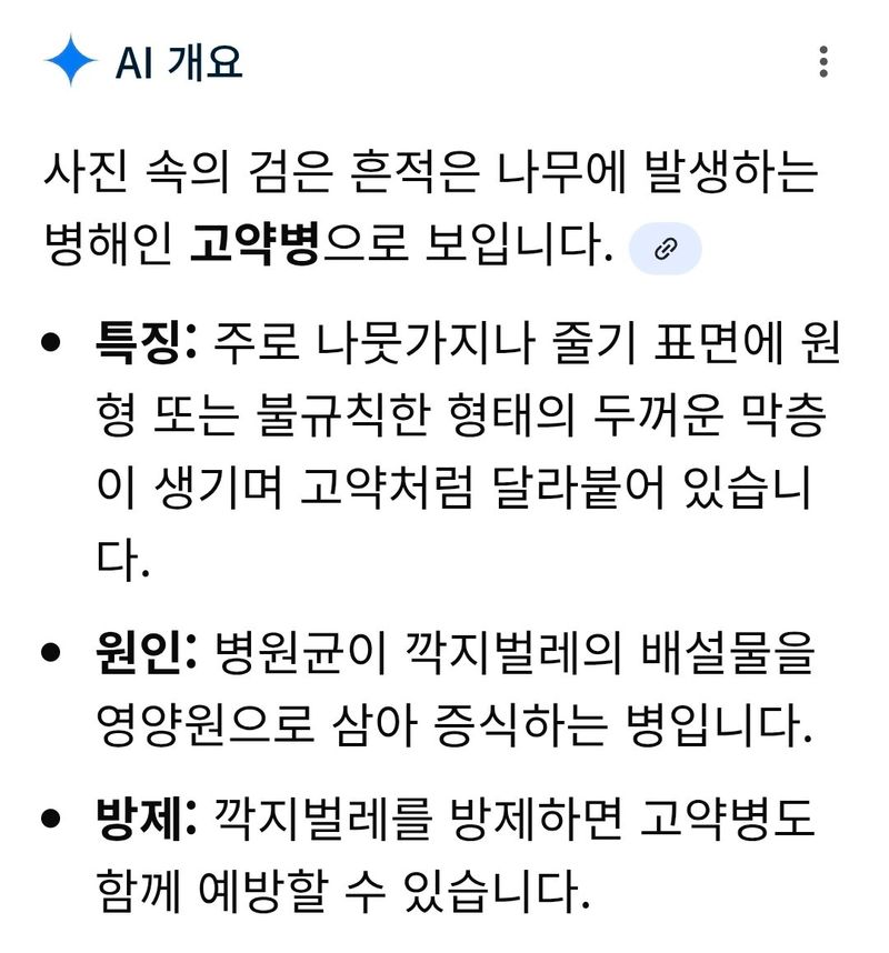 3.균사층 밑에 깍지벌레가 있을 수 있으니 석회유황합제+스미치온 or 데시스류 농약을 혼용하셔서 처리해주세요.
