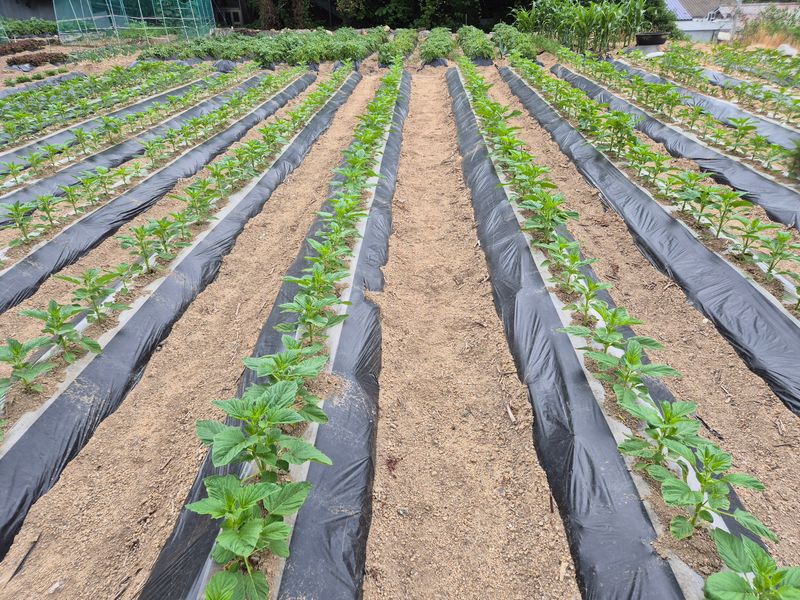 제가 농사를 못지어서 묵은 밭이다. 심었어요 걸음 한 거는 농협에서 나오는 똥걸음이라고 하는 꺼 . 그것만 뿌리고.