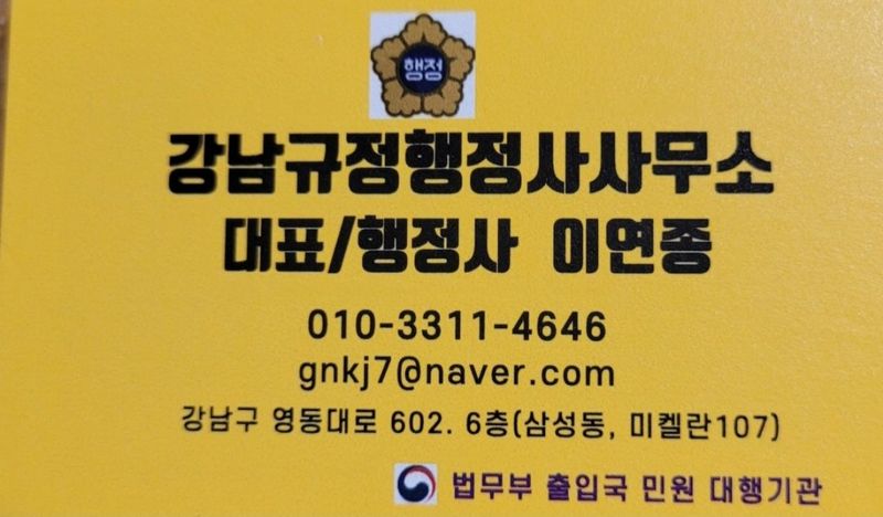 행정사 사무실은 제가 서울 강남구에서 하고 있습니다.