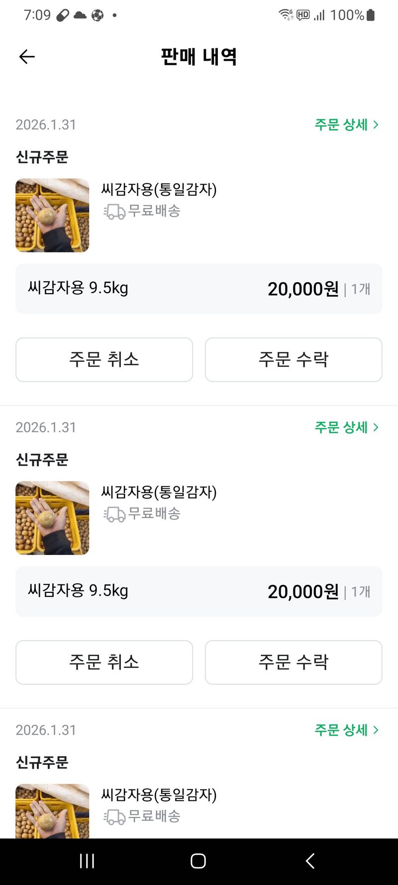제 판매창에는 아직 주문하신게 표시되지 않았네요.