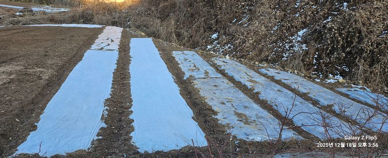 마늘밭 추가로 부직포 덮었다