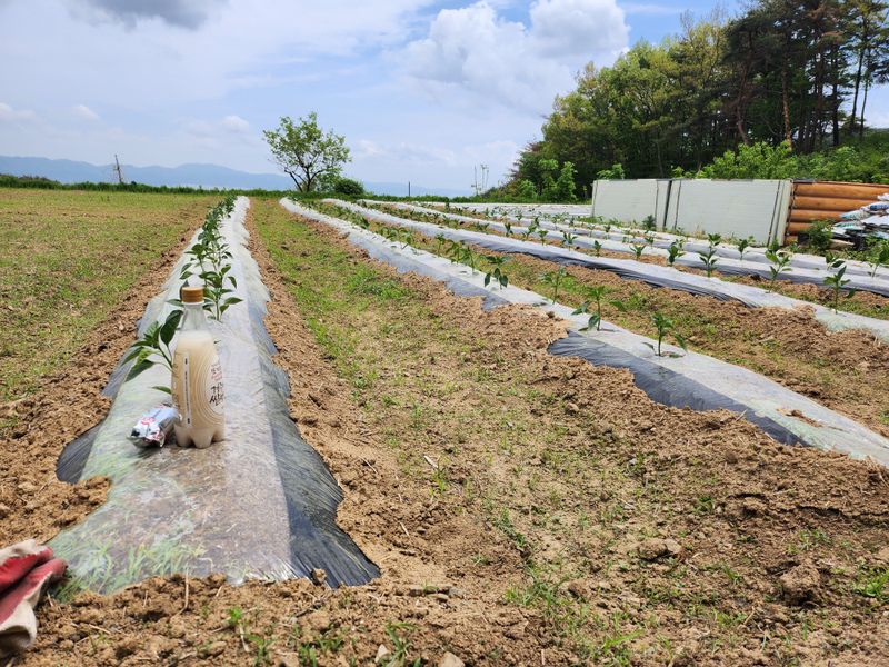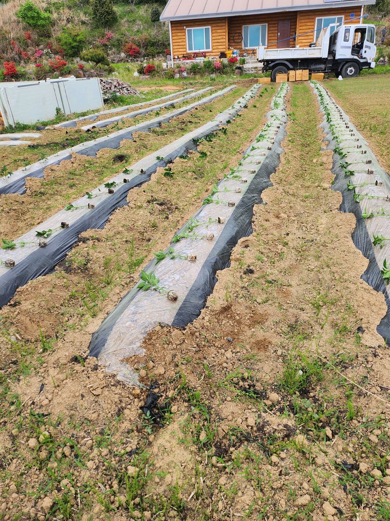 옥수수(초당)를 100미터정도 두줄을 파종했습니다 산 꼭대기라서 기온차가 많이나서 두달전에 심었던 감자는 이제 싹이 오라와서 조금늦게 수확해서 먹더라도 천천히 가보려구요 그리고 고구마도 50미터 6줄을 심어습니다 이른 새벽에 일하고 오전9시에는 퇴근해서 과공서.병원...