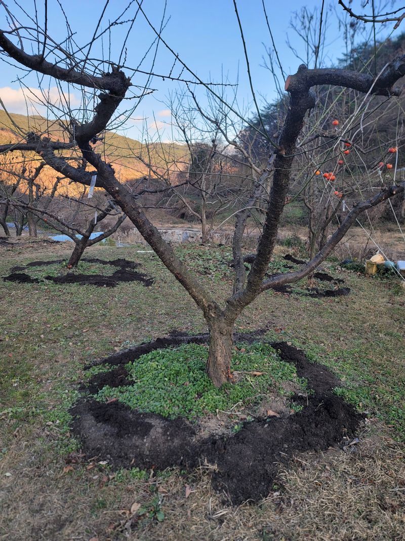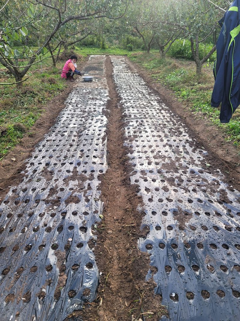 비옴 매실나무 처진거 받침대 설치 마늘,양파밭 고랑보수(물빠짐 좋게) 퇴비 적재물 비닐 덮기