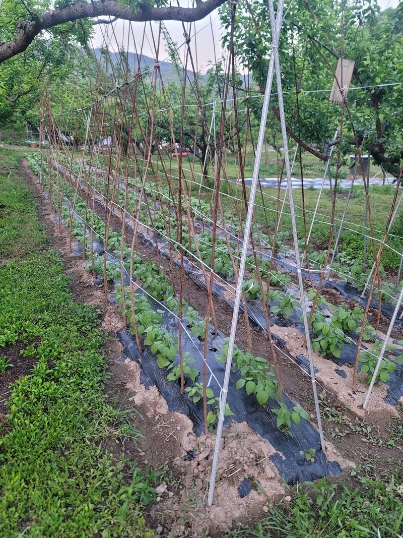 고구마이랑 비닐멀칭, 순 심기 콩받침대 설치