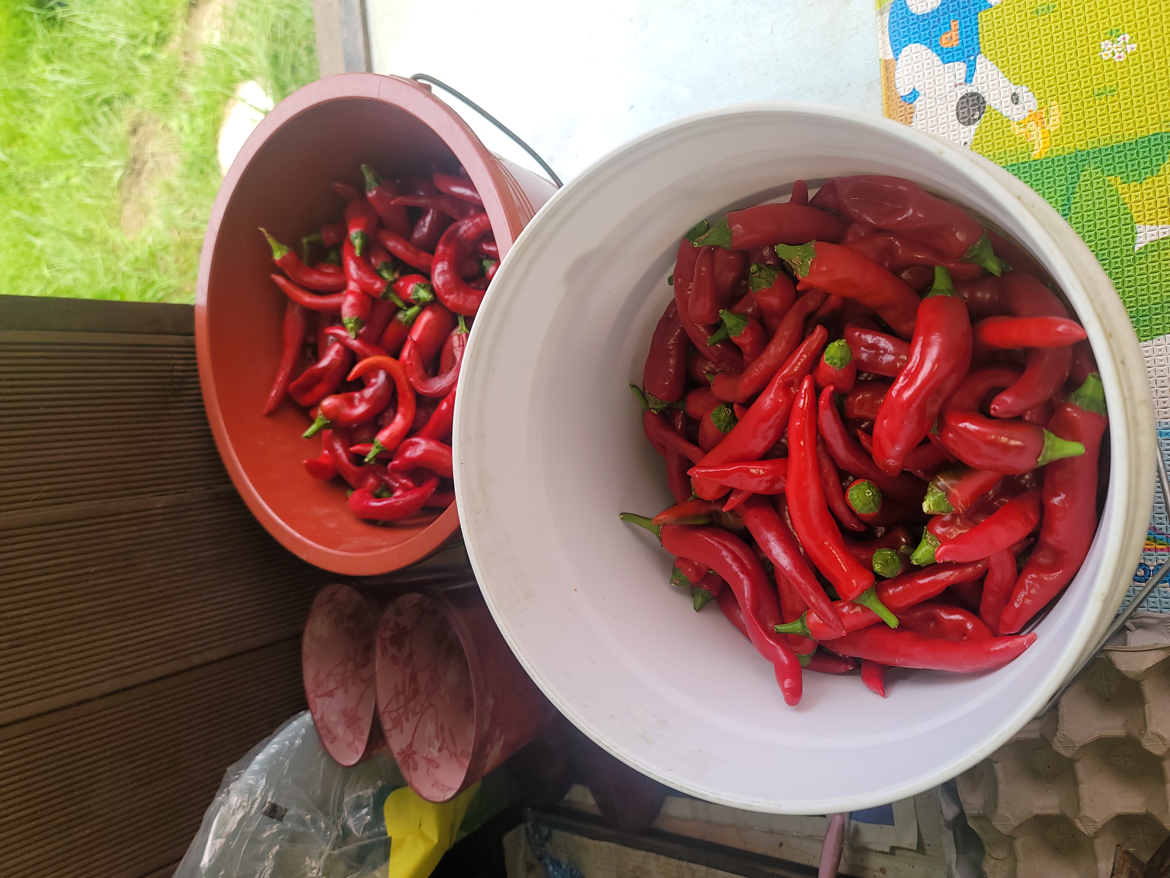 고추수확후 바구니에 그대로 담아 숙성시킴 2일후 월욜저녁에 건조기에 넣음
