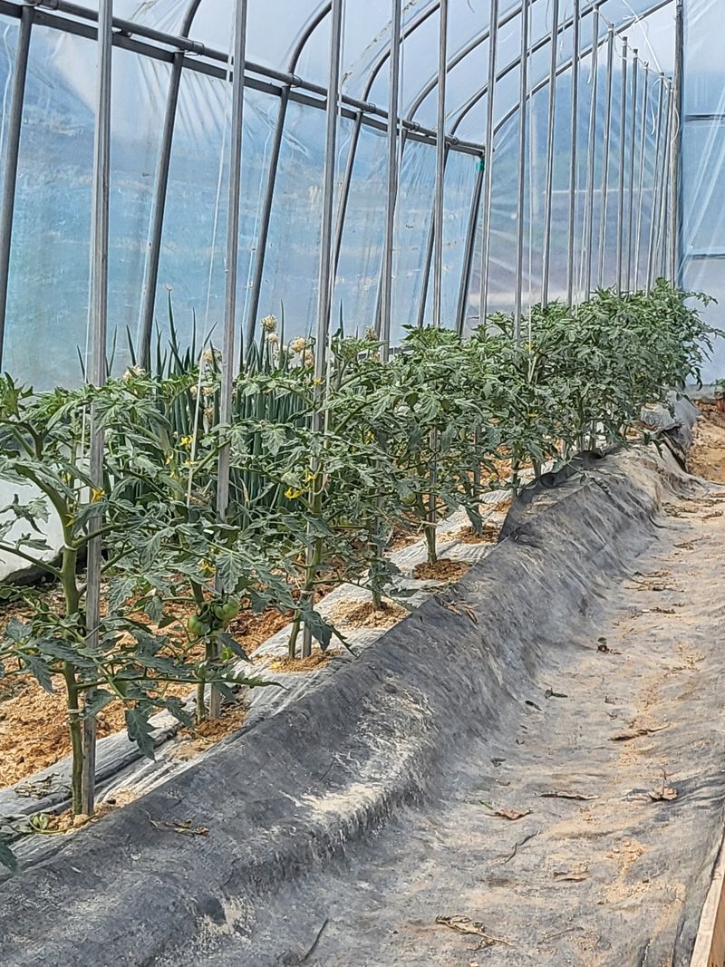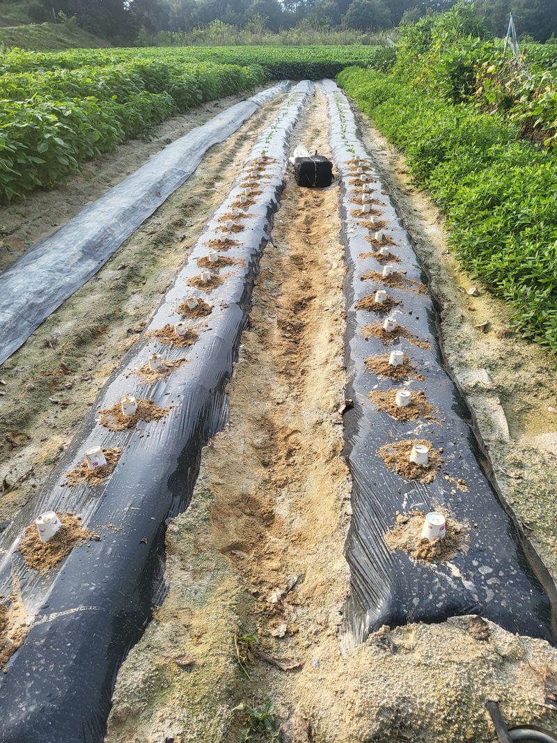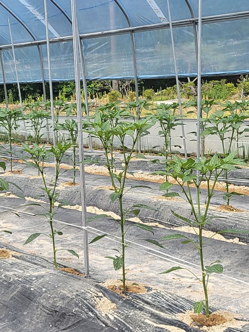 고추 곁가지제거하고 고랑에 풀제거후 제초매트시공함