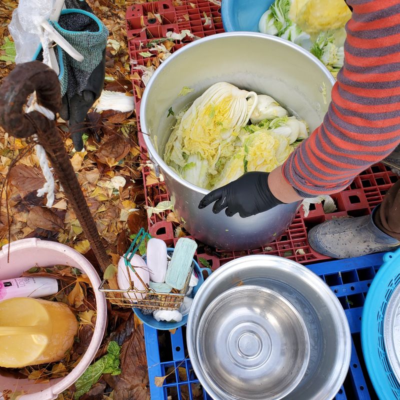 배추 전부 노끈 묶기작업 무우수확 쉼터앞 작업 월동준비