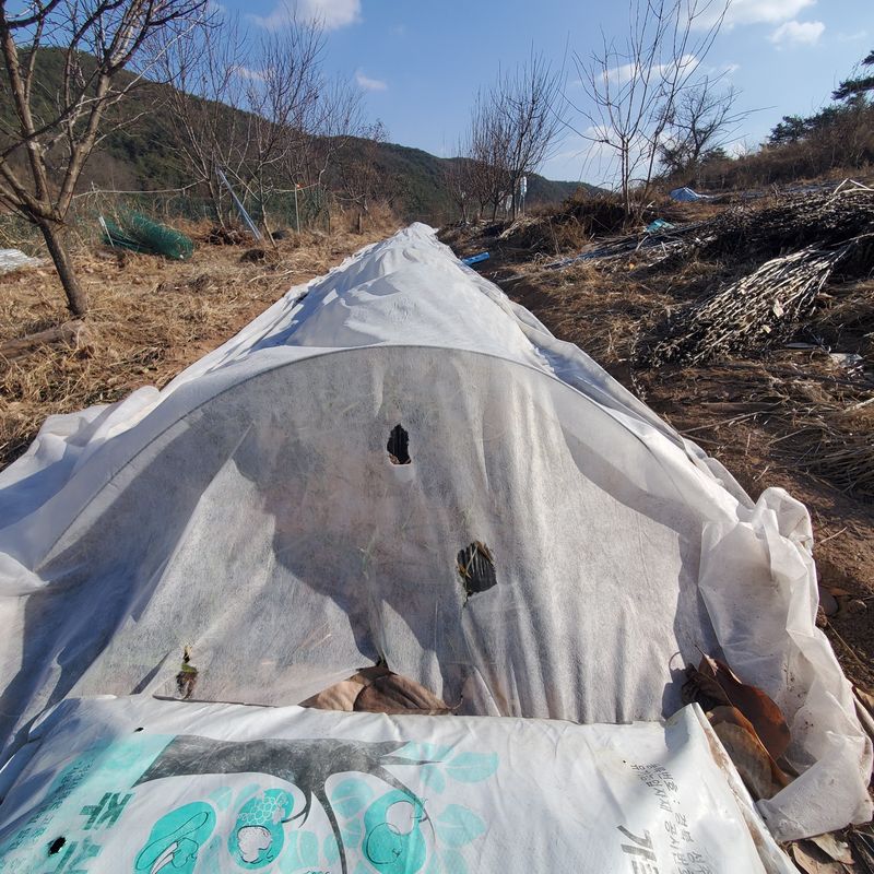 오늘은 월동준비 보온덮개 설치 탱크 6톤 물 채우기 보온덮개 더덕 씨앗 뿌린곳 가드리설치