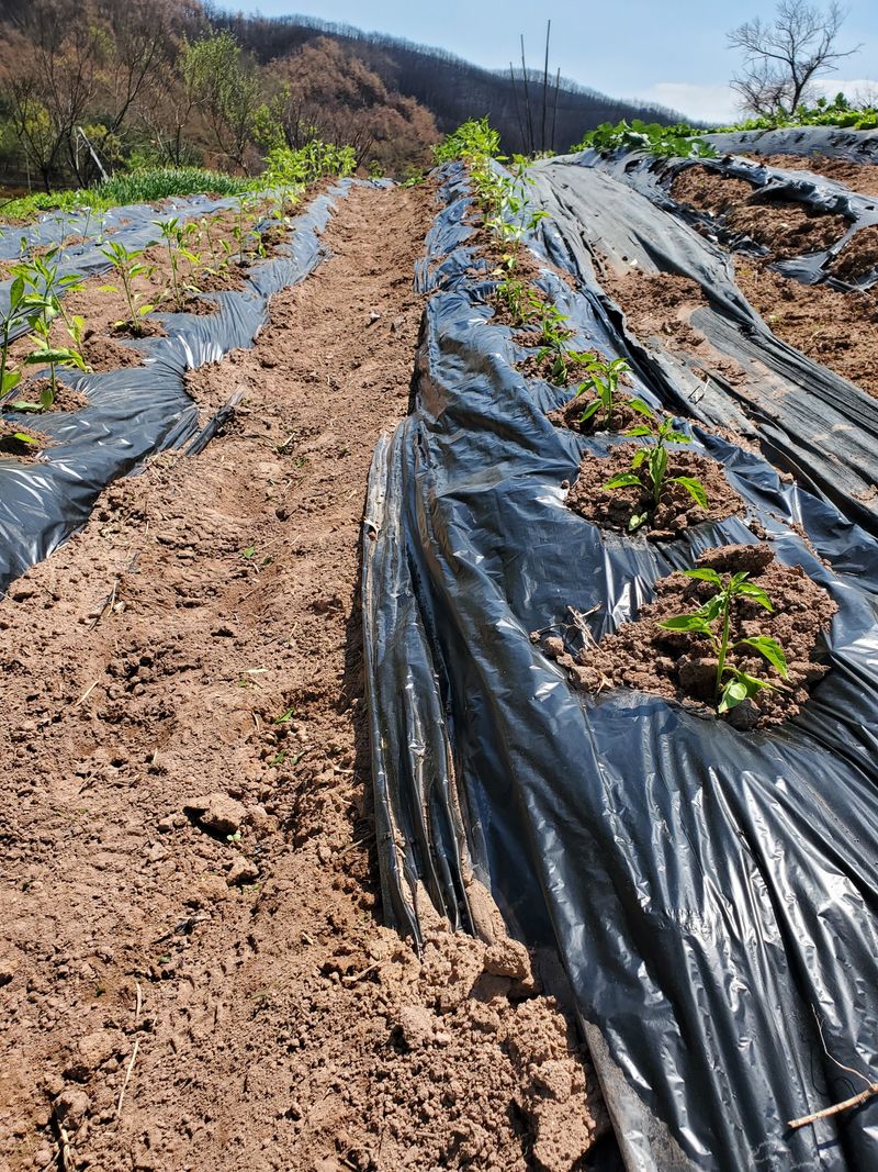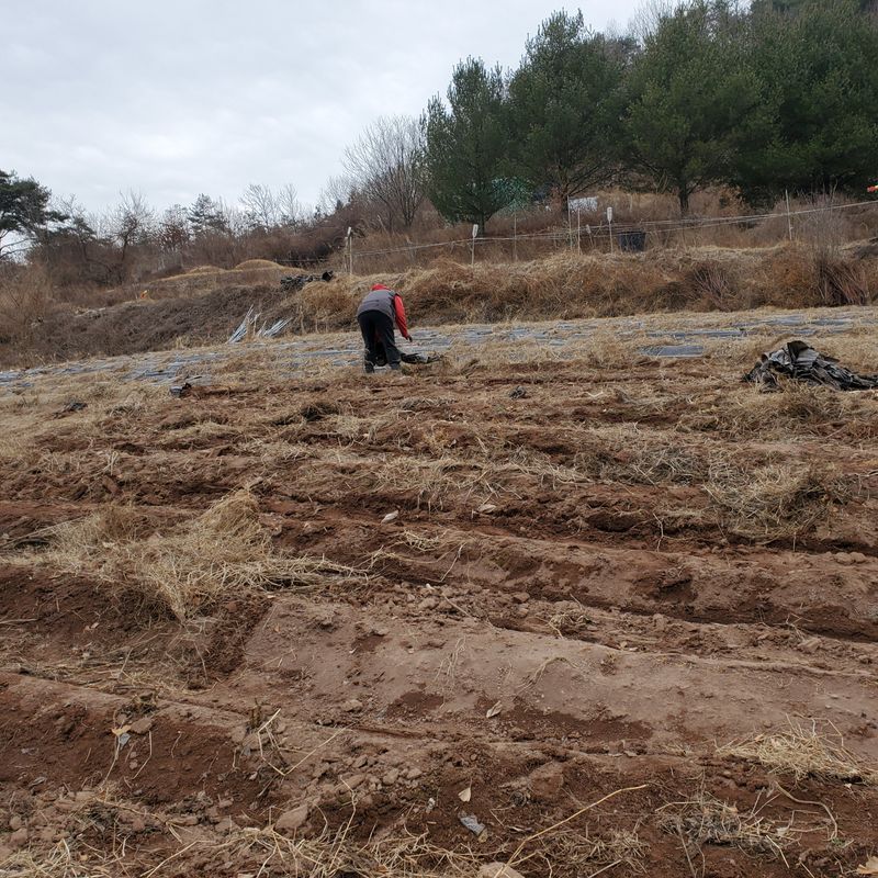 비닐 마지막 다걷고 마늘밭 부직포 다걷고 복숭아 전정작업 관정 호수 6개 작업 완두콩 3종 싸앗 파종