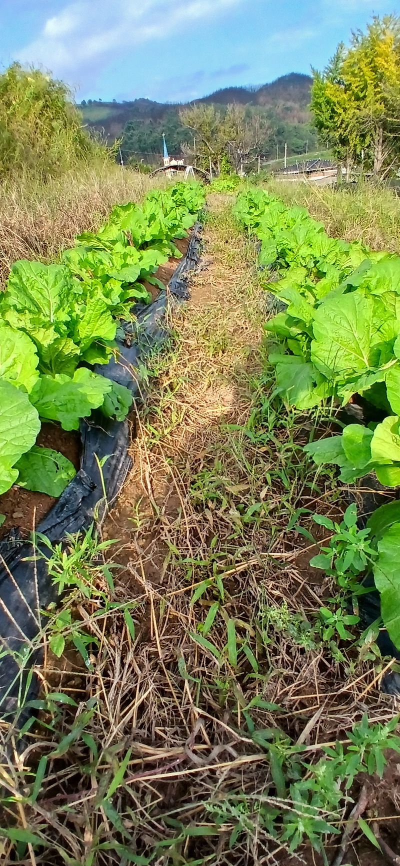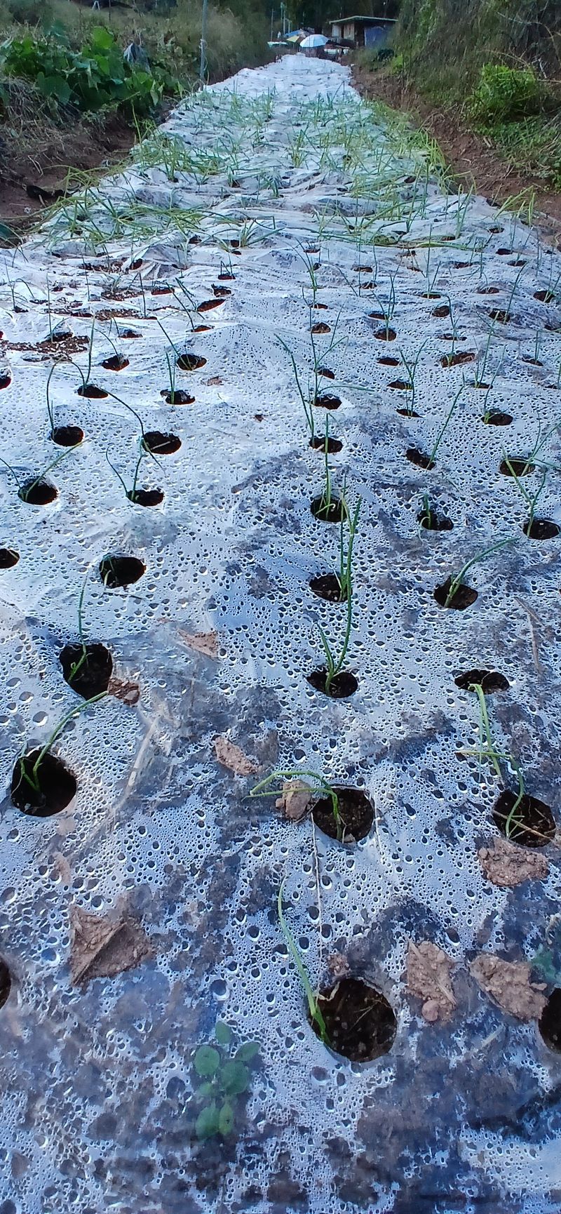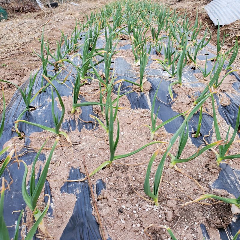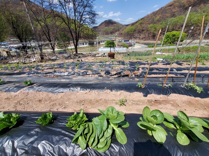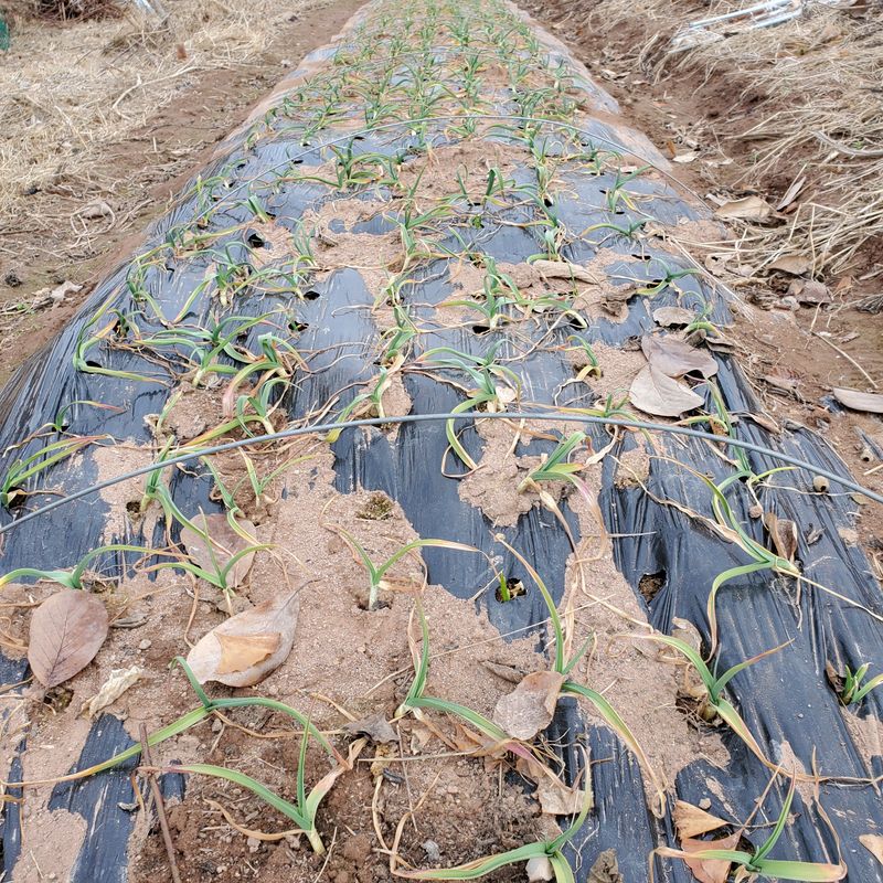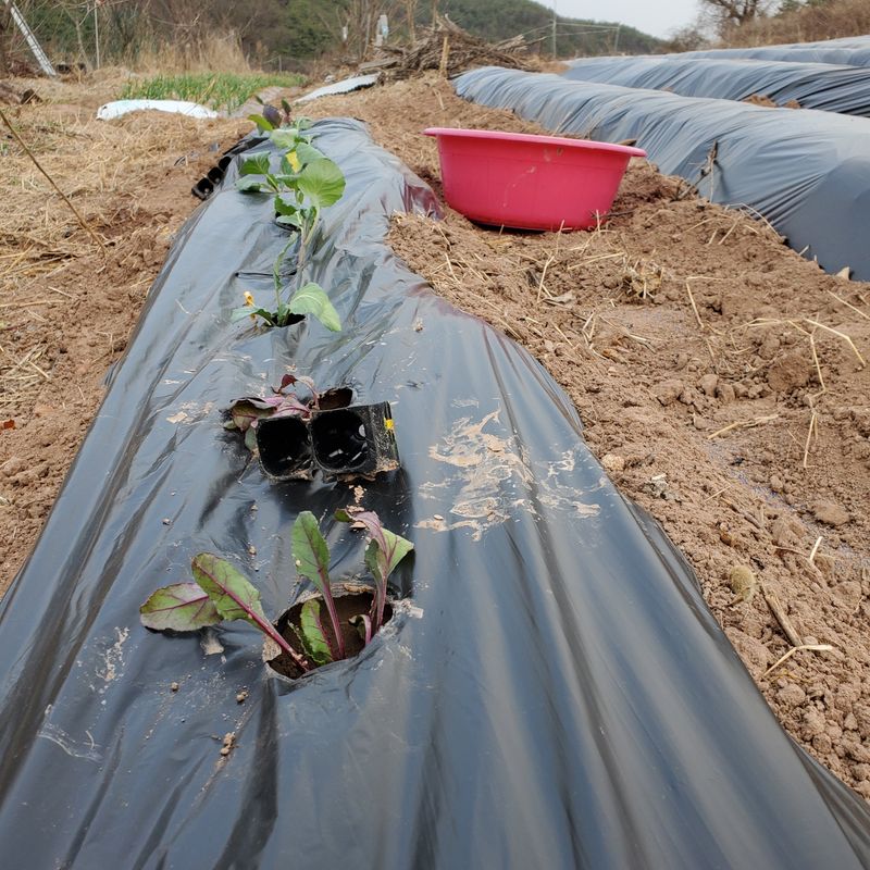 무우일부수확 얼갈이배추수확 마늘 새싹 구멍으로