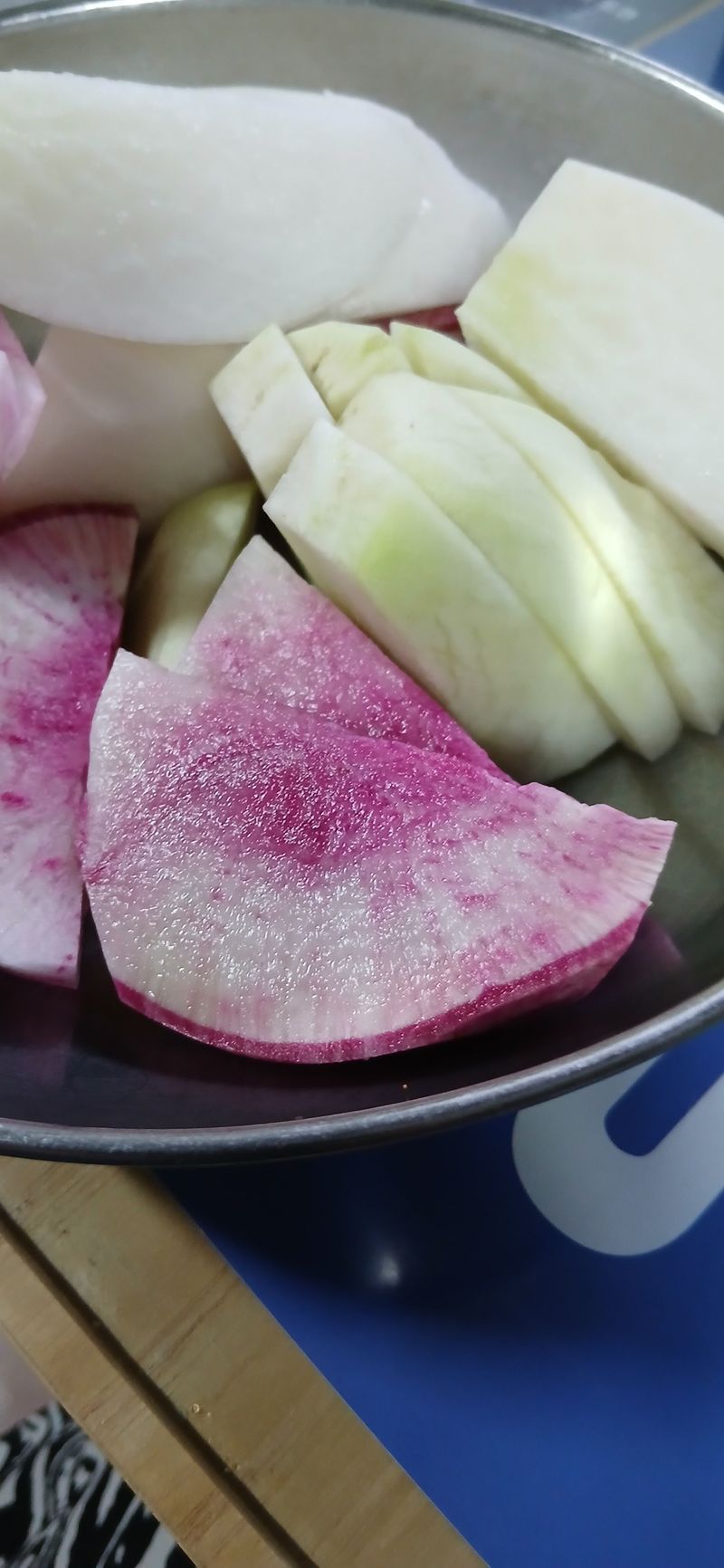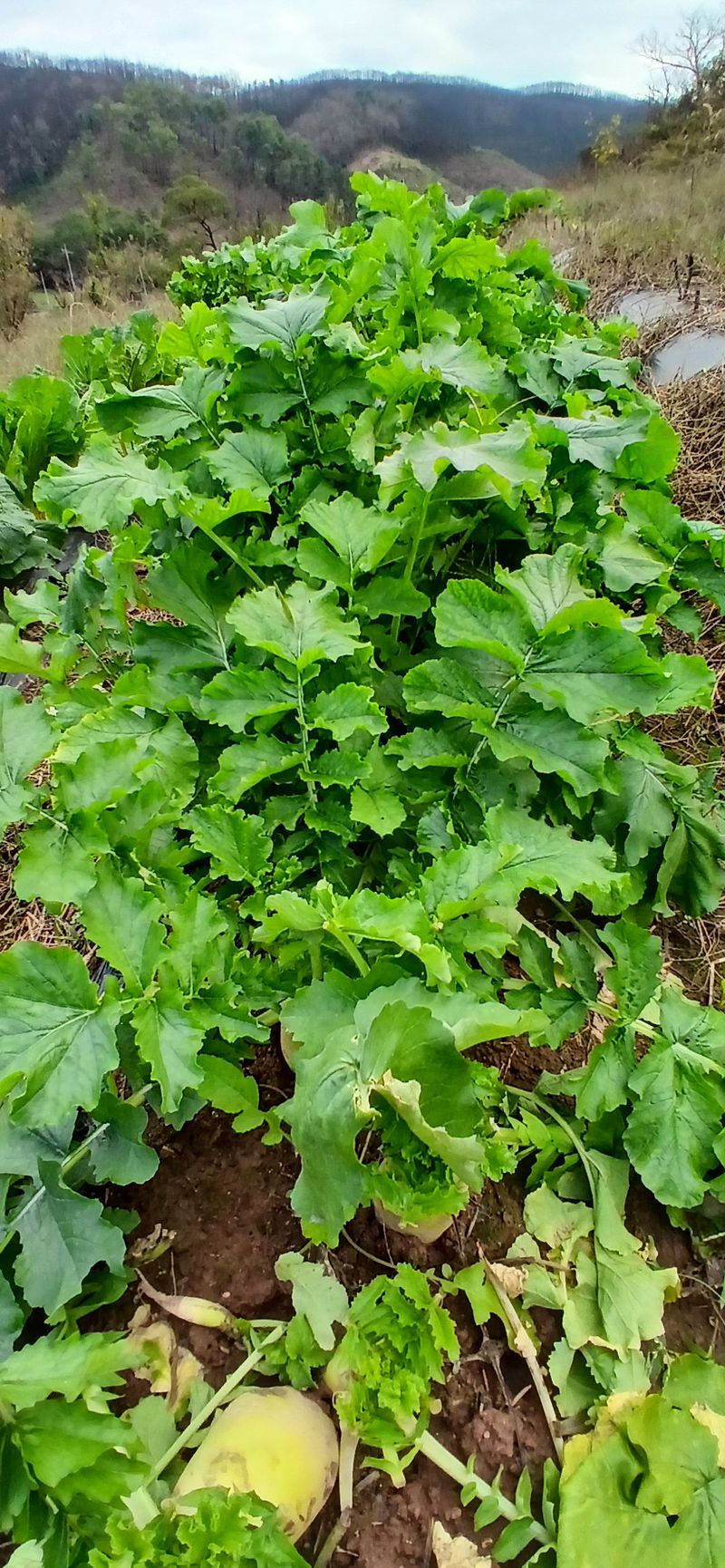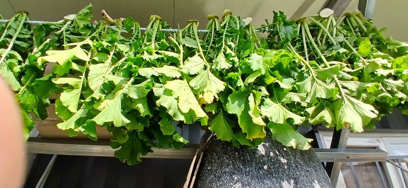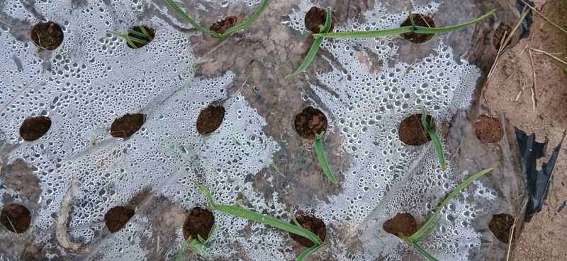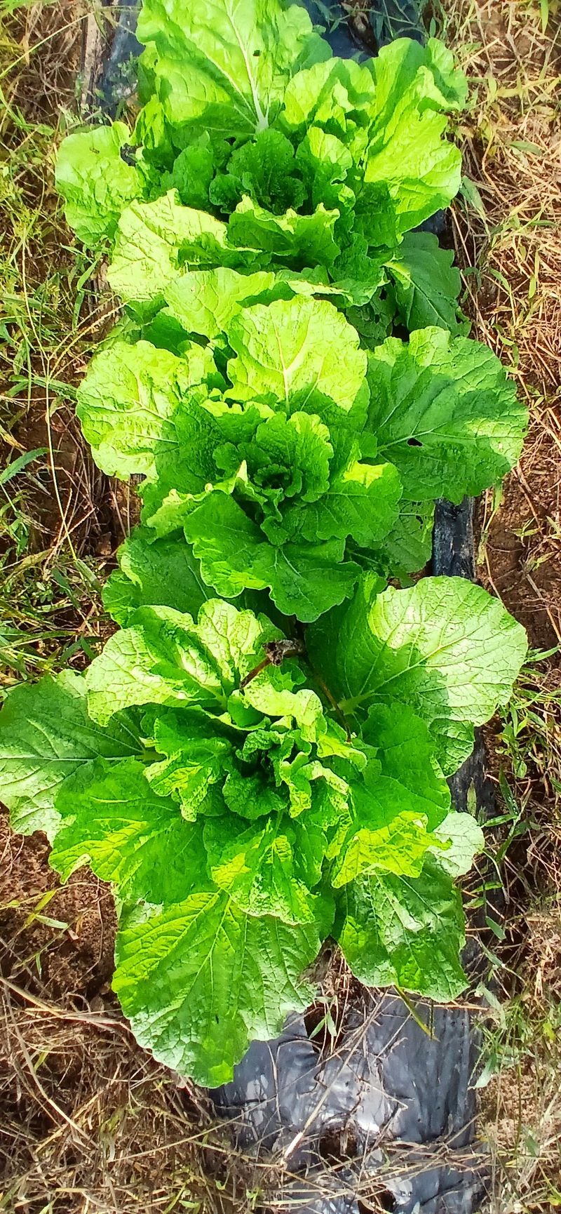 무우일부수확 얼갈이배추수확 마늘 새싹 구멍으로