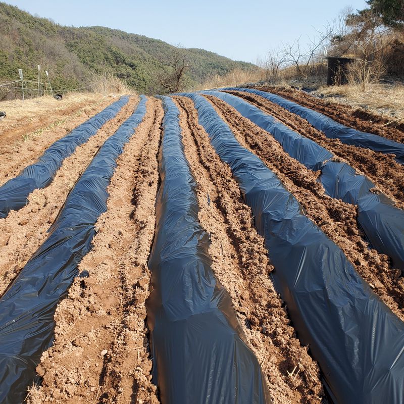 수로작업 땅콩두둑작업후 멀칭 비닐 열어주기 잡초작업