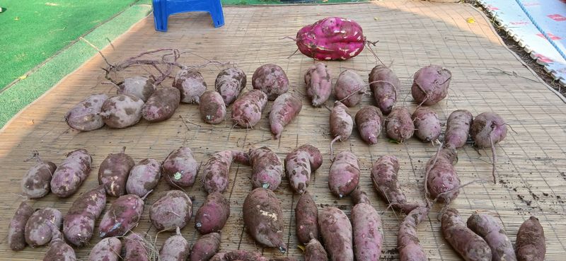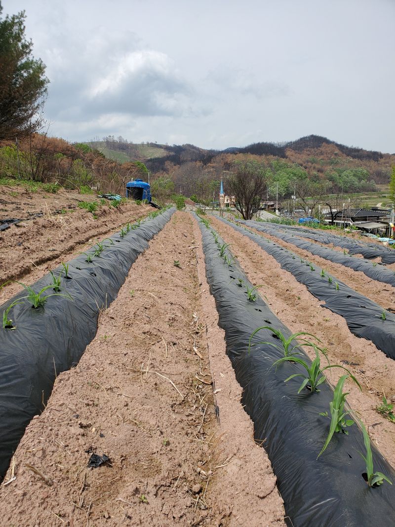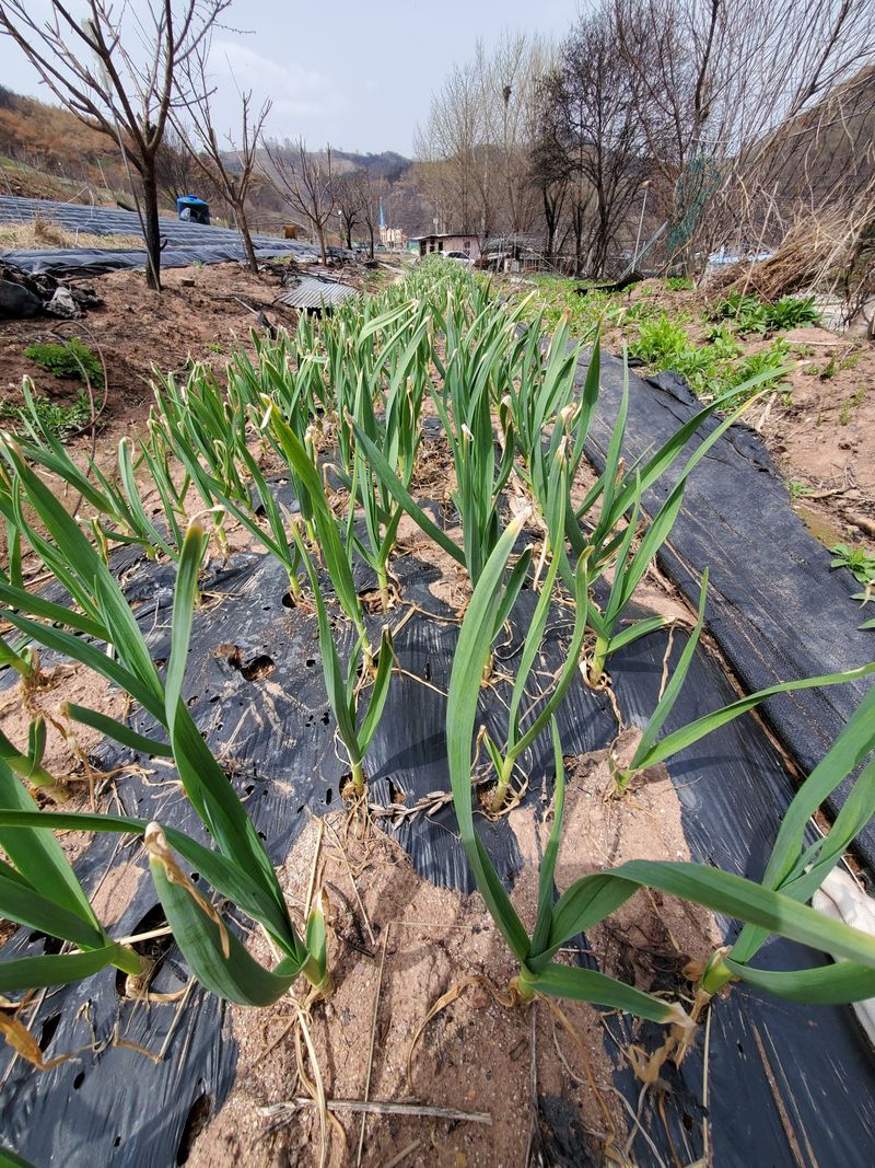 화마후 화장실 공사 멀칭 고구마확인 감자확이 잡초제거 엄나무순 수확 마늘 두개짜리 솎아냄