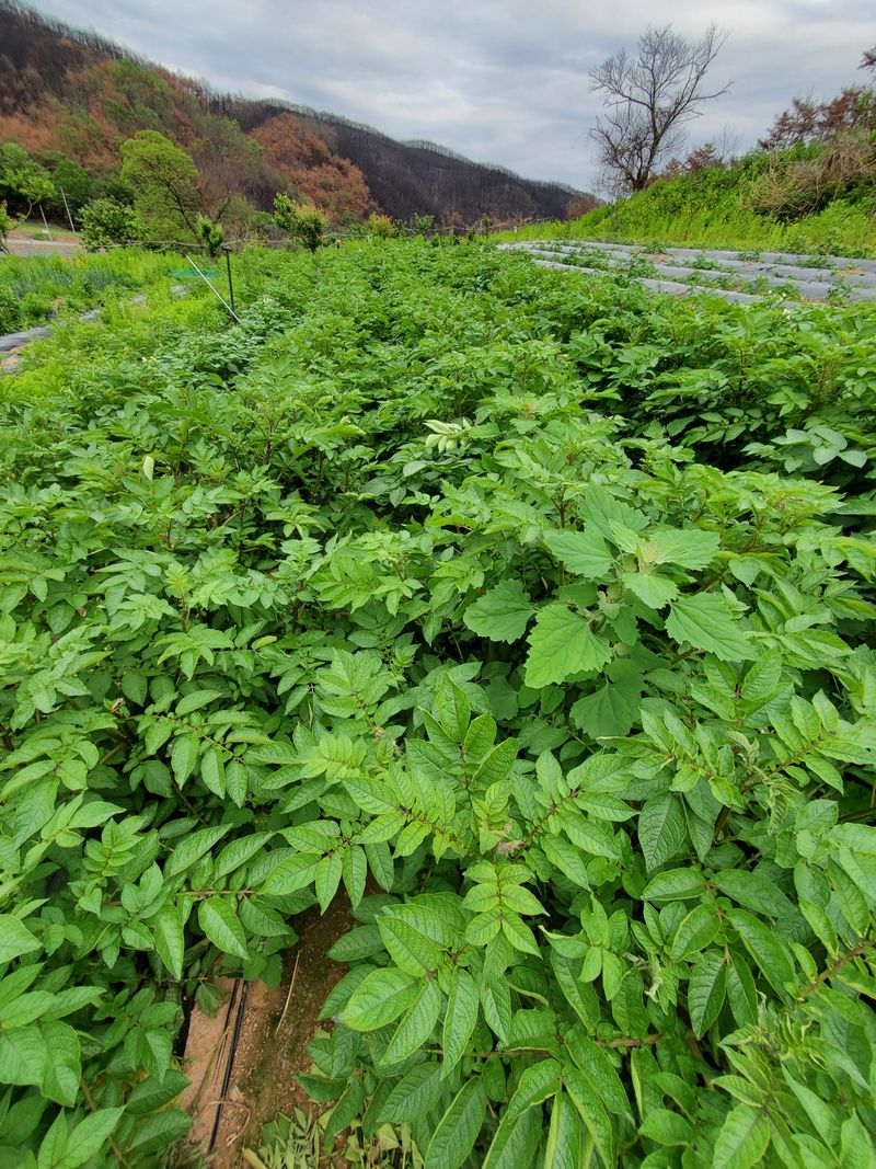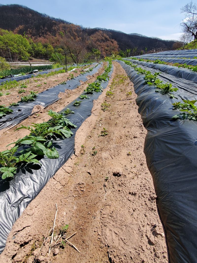 산불피해 낼철거작업 전부준비 잡초제거 옥수수 4차심기 마늘쫑 제거 감자밭잡초제거