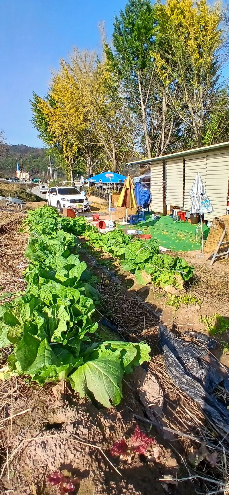 배추 마지막 뽑기와 2차 김장소금절임 강풍과 많은 눈으로 농막앞 햇빛가리개 파손제거 파라솔 나라간곳 확인 정리 은행알 떨어진 마당 두박스 수거 눈속 목련꽃이 피어요