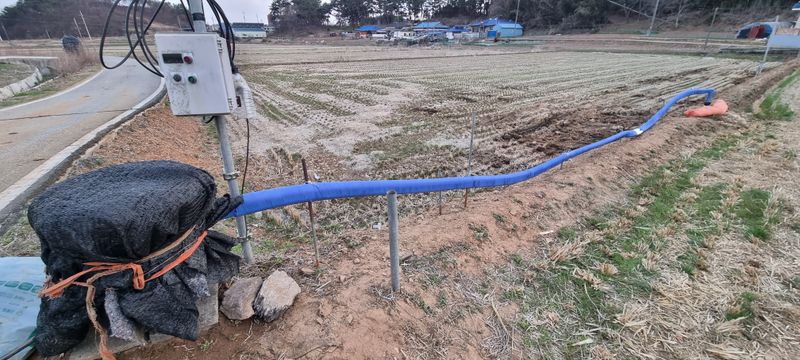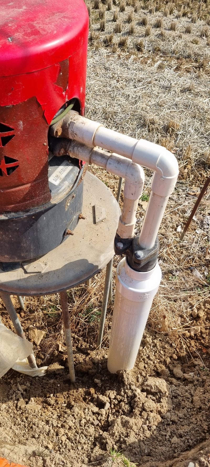 논둑보수를위해 지하수펌프 탈거했다ㆍ지난여름 비로인해 지하수펌프관정부위가 무너져서 펌프를탈거후 논둑을 보수한다음 설치하려고 한다