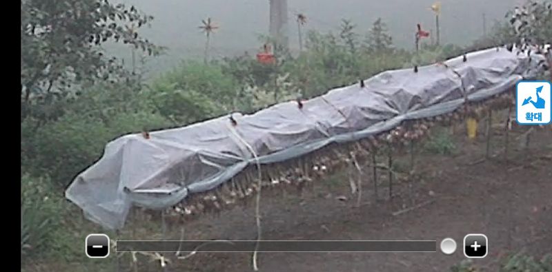 마늘건조대를 보완하여 비가내려도 빗물고임이 없도록 중간에 줄을설치했다
