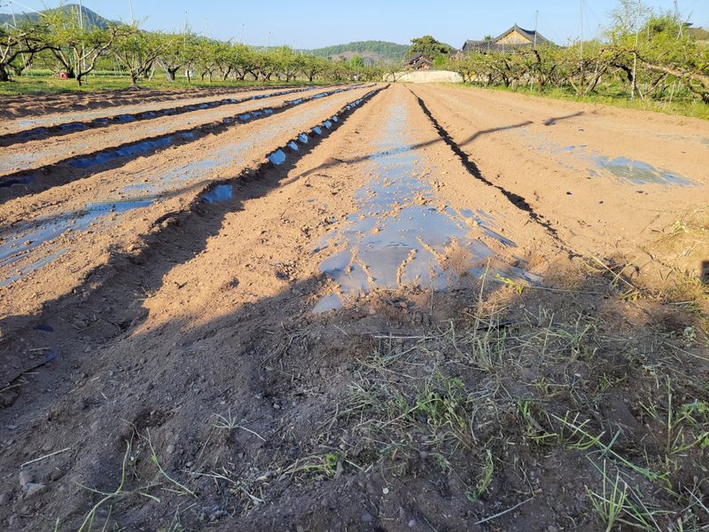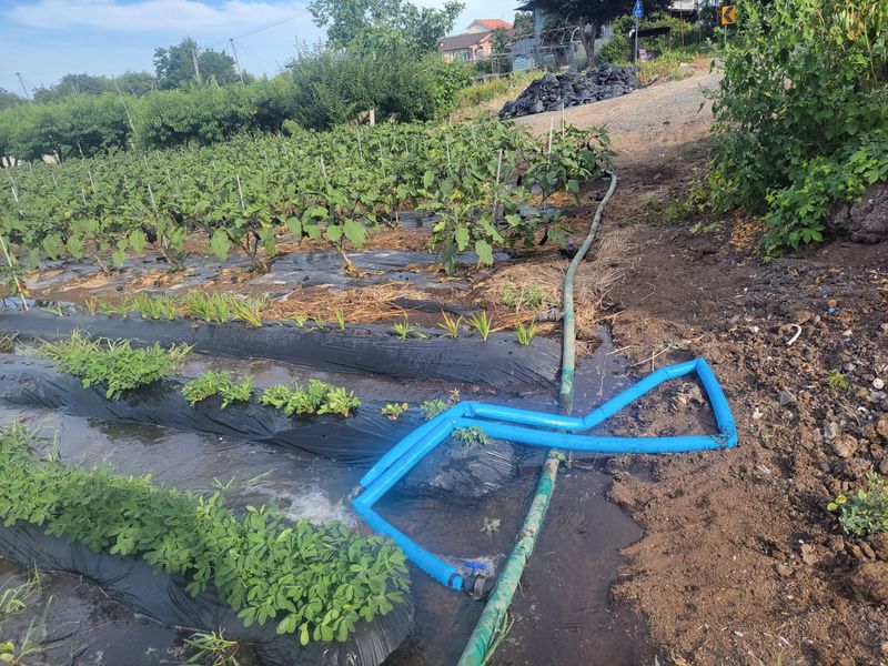 가뭄과의전쟁중입니다 지속적인 가뭄과 고온에 양수기 가동에 물이없어 가정용 수도로 물공급중입니다 농사짓는분들의 노고에 하늘이 빗방울이라도 내려주십사