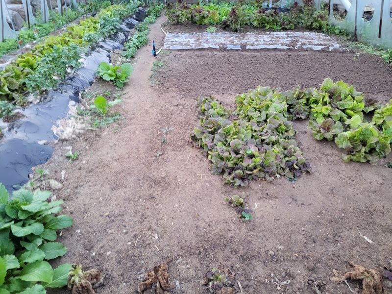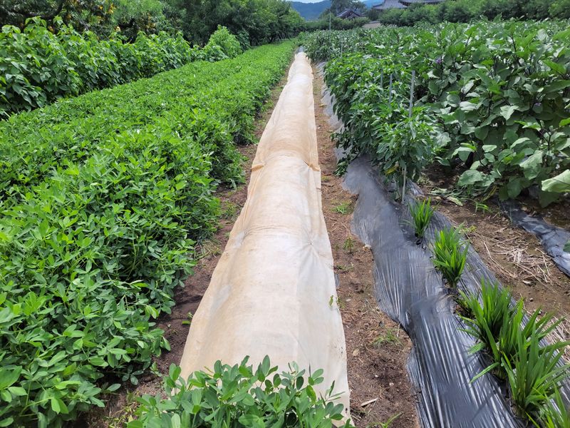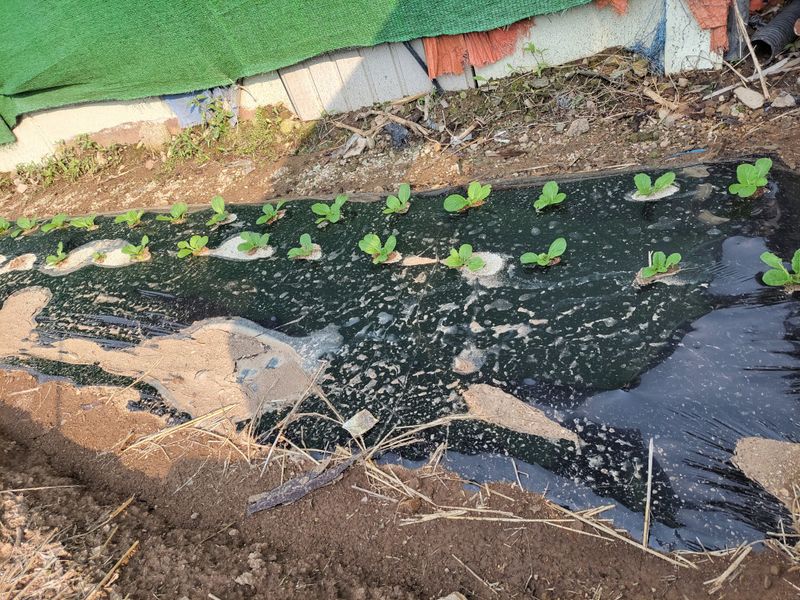 김장배추 씨앗 정식작업 후 부직포 덮었음