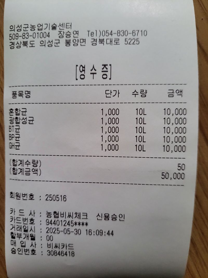 1)가지출하작업 2)기술센타 미생물5종 ×4셋트=40.000원