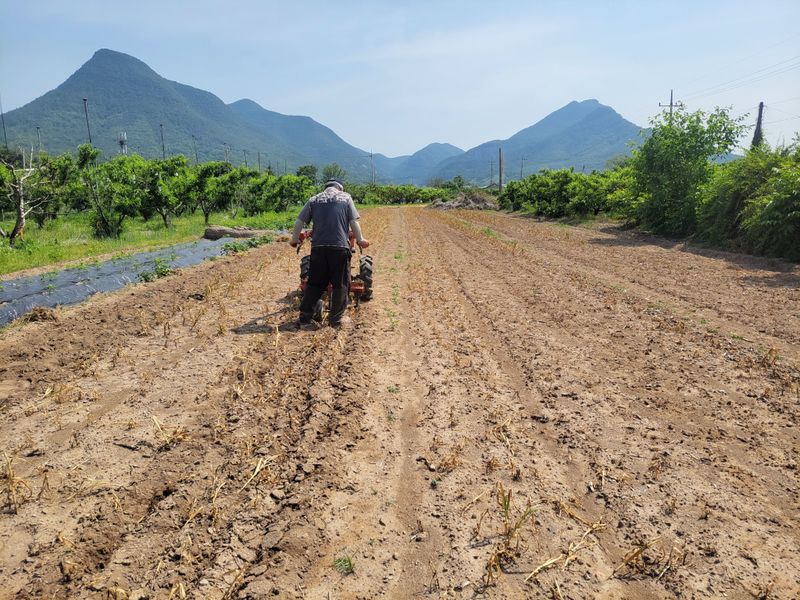1)가지밭 . 고구마밭 . 마늘밭 들깨심음 2)경운기 구리스칠작업 3)분무기 구리스작업
