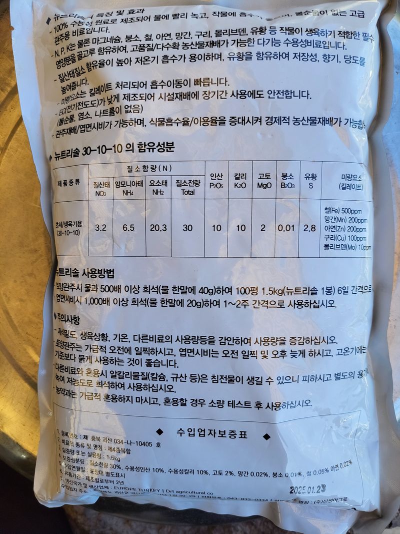 미생물5종 마늘효소 개복숭아효소 아로니아효소 쑥효소 요소2k 제3차혼용살포함