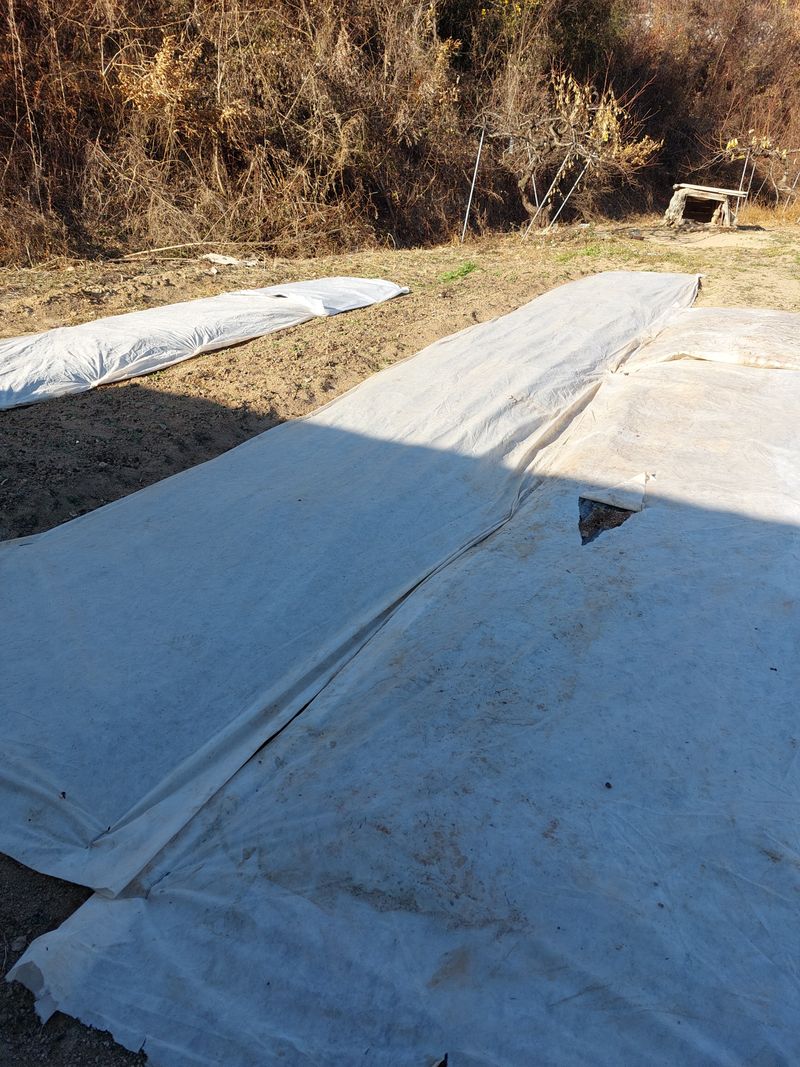 배추수확 23포기(미대동통장3), 마늘,양파 남겨둔 배추 부직포로 덮어줌