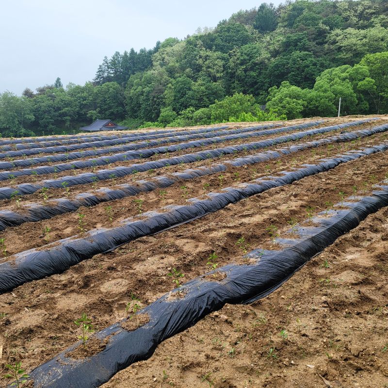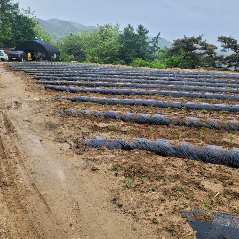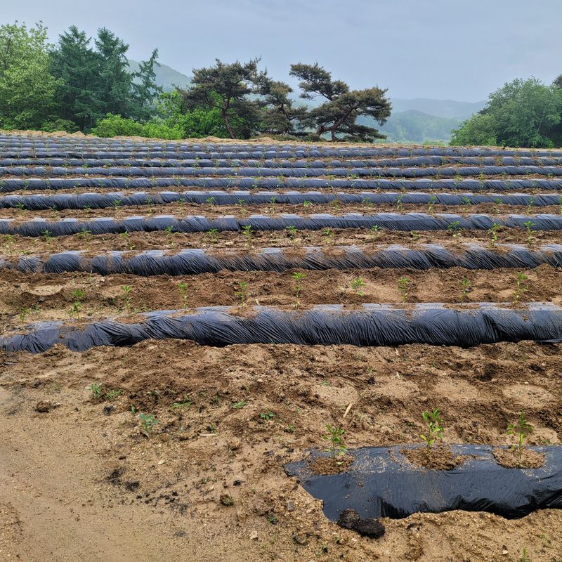 고추를 심었습니다.(1300모) 1.비닐속에 물을 충분히 주고 심음. 2.날씨는 흐림