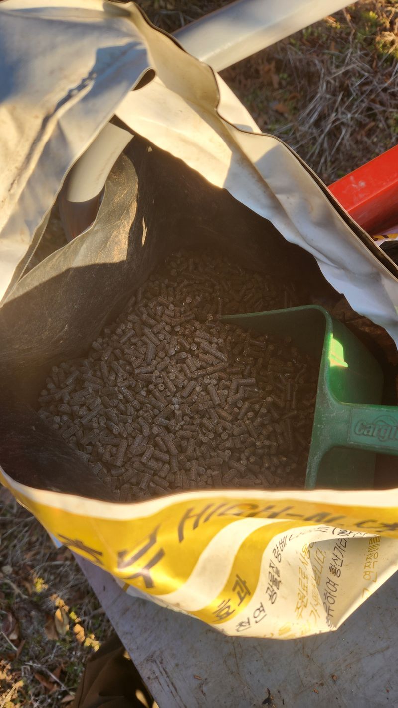 자두밭에 붕사를 살포하였읍니다 지금부터 붕사비료를 비롯해서 소석회와 유기질 비료를 뿌리고 동계방제가 시작되는데 미리 준비를 해야겠지요