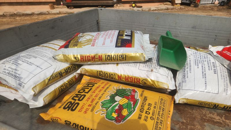 오늘은 치요다 14-17-12를 살포 하였습니다 종이컵으로 1그루당 2컵씩 나무 주위로 살포하였읍니다 내일은 방제를 할 계획입니다 살충제와 살균제 그리고 냉해예방을 위한 해저 추출물 아미노산 그리고 붕산을 혼용해서 살포할 예정입니다
