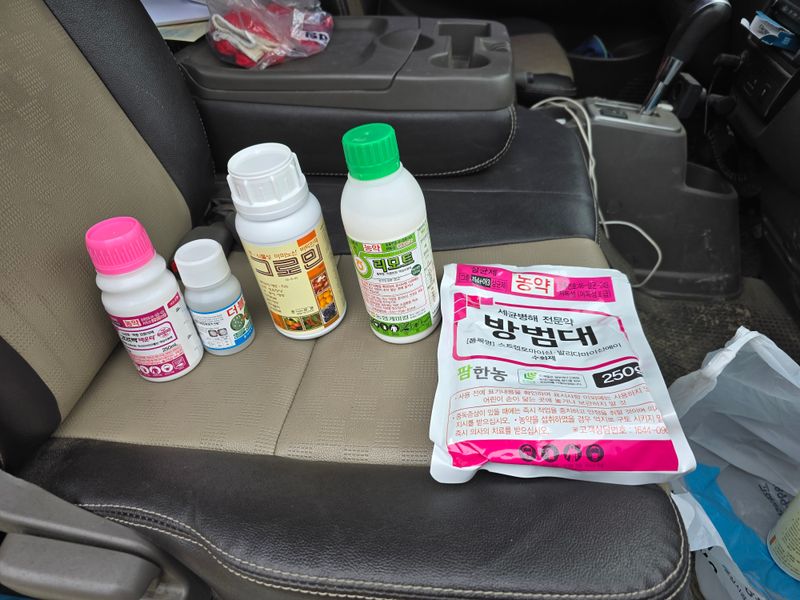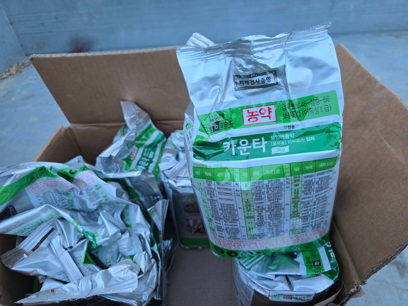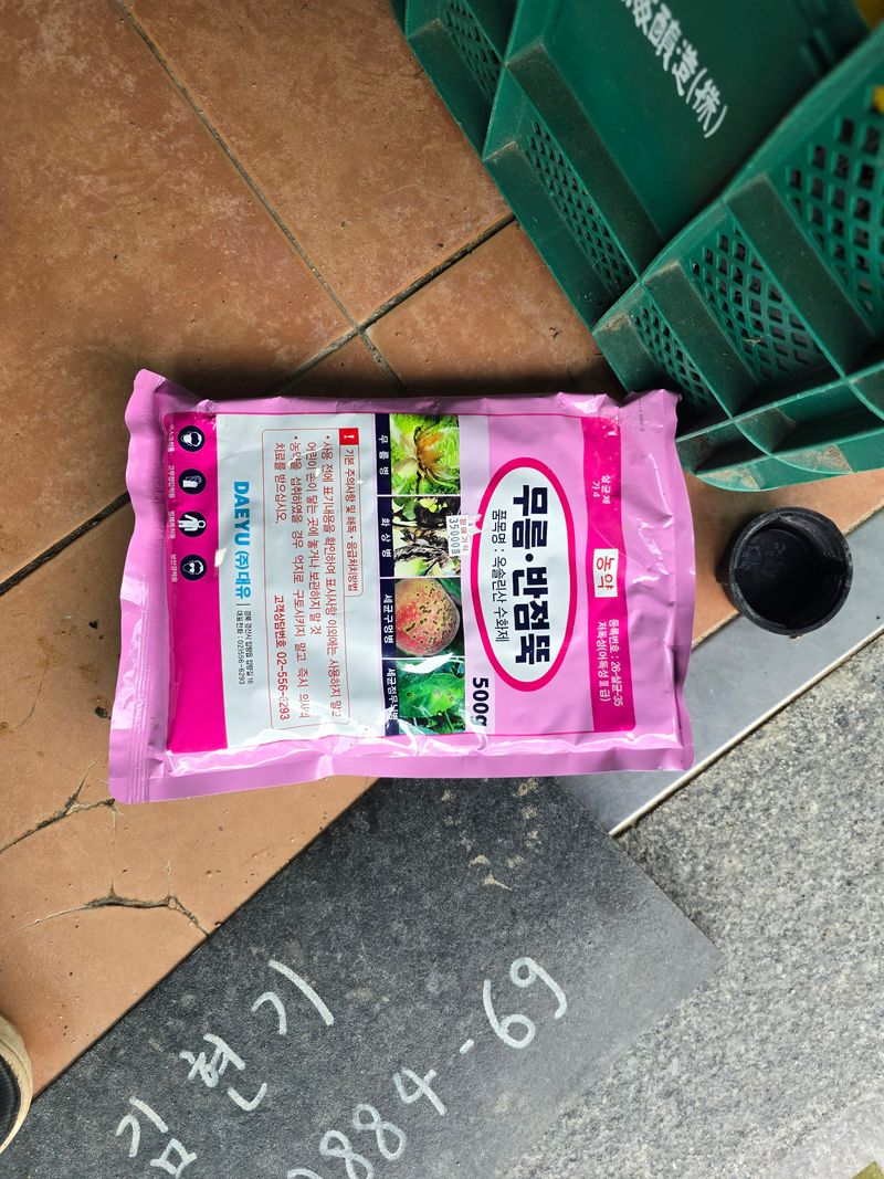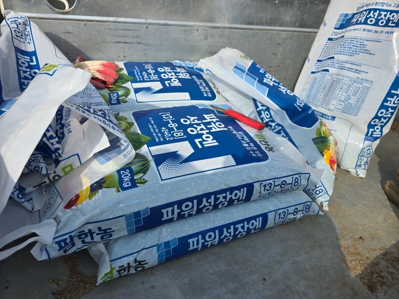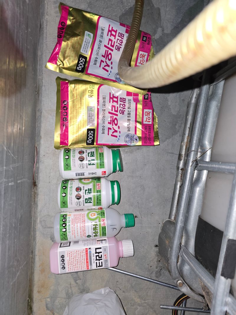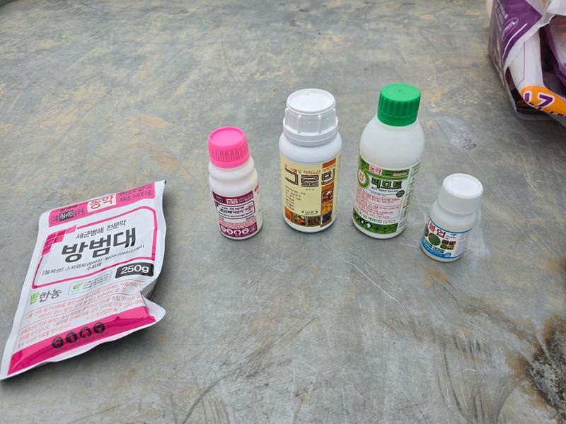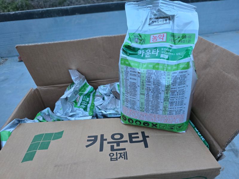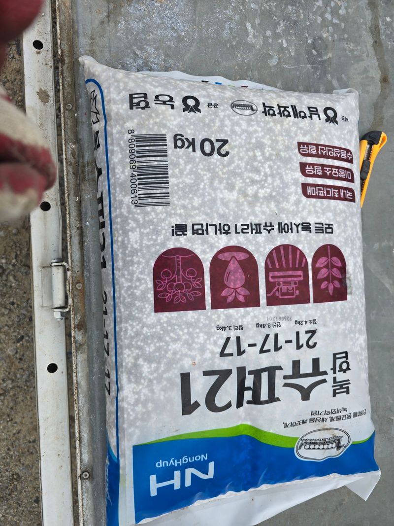 원협 에서살균제1박스 완효성비료35포사가지고옴 고추 심을데 완효성비료5포 복합비료 2포뿌림 파쇠기 세족기사다가 부착함