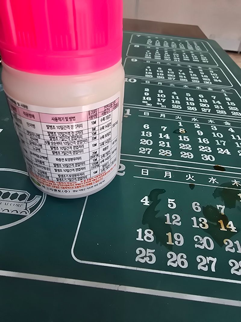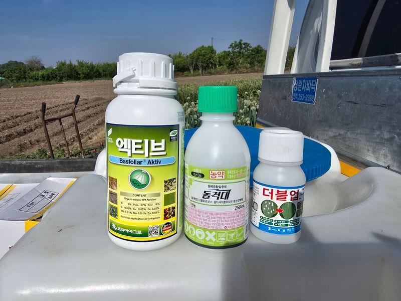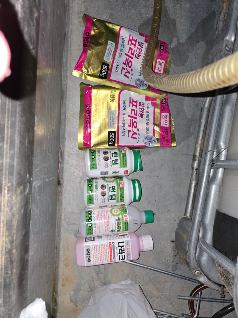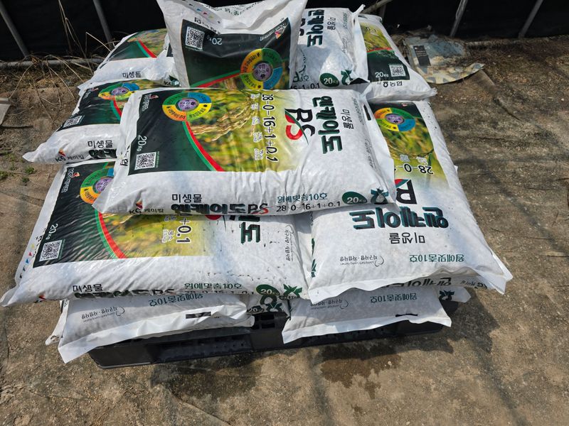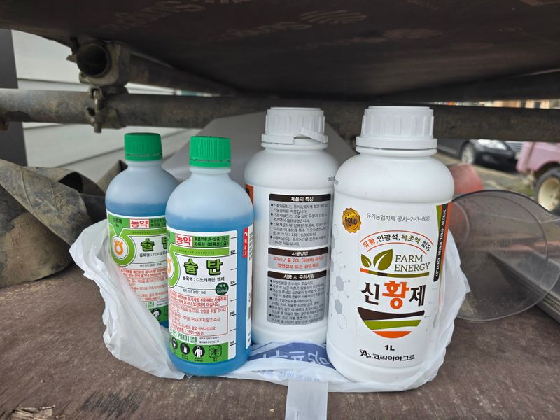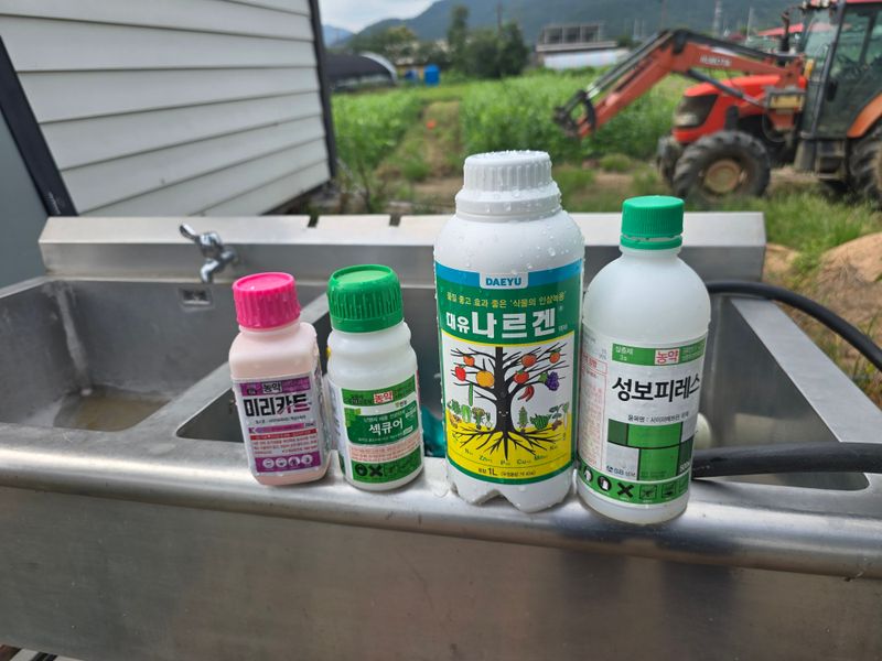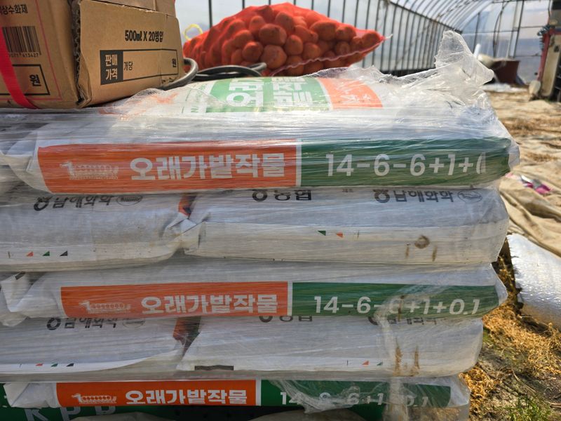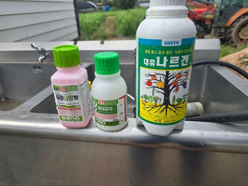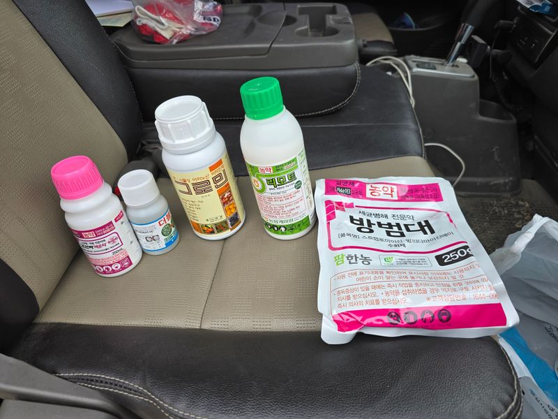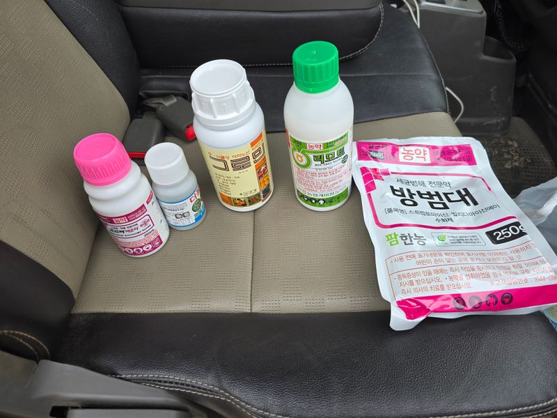 원협 에서살균제1박스 완효성비료35포사가지고옴 고추 심을데 완효성비료5포 복합비료 2포뿌림 파쇠기 세족기사다가 부착함