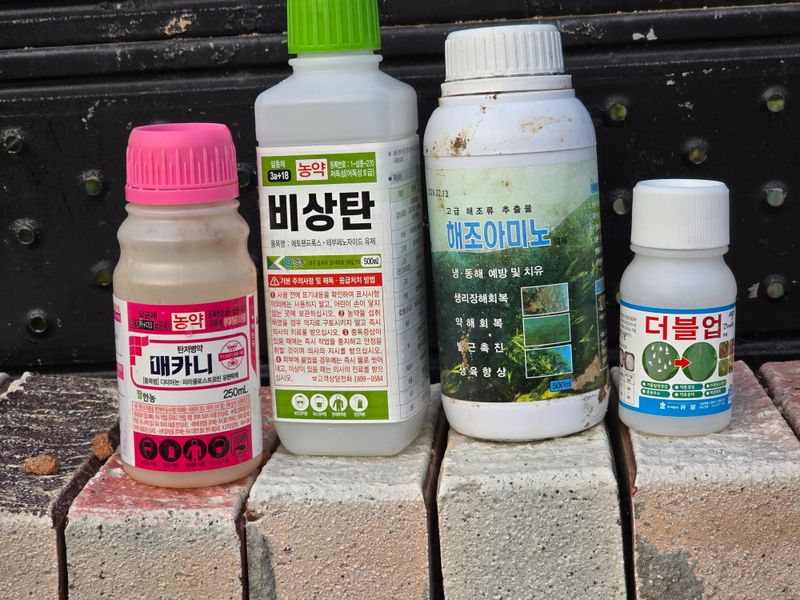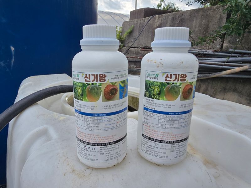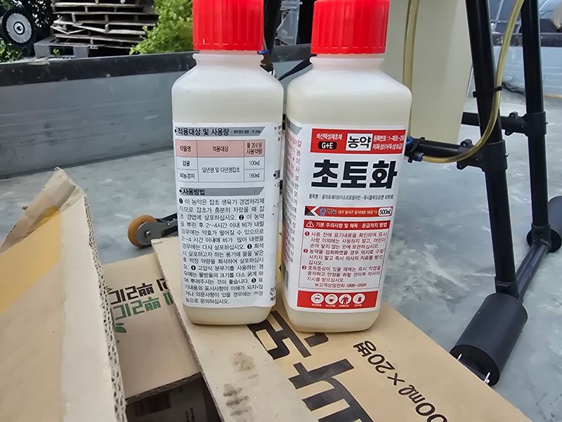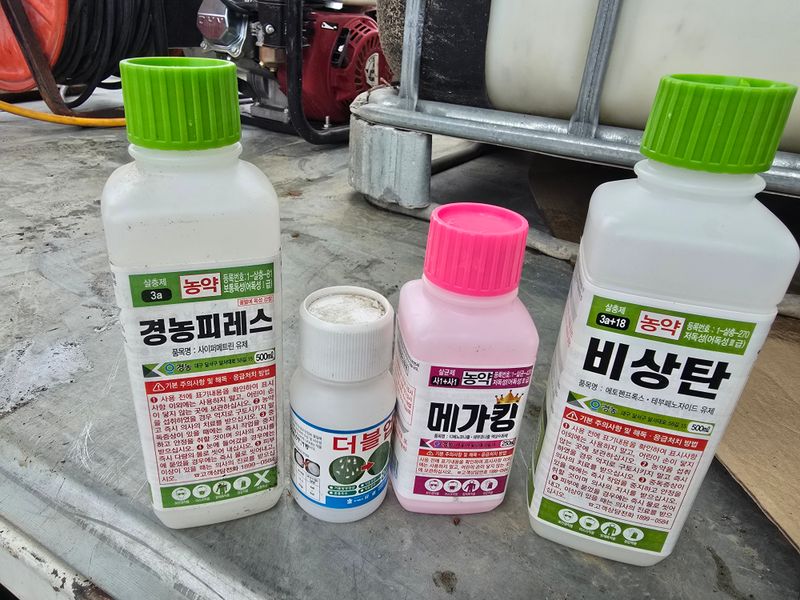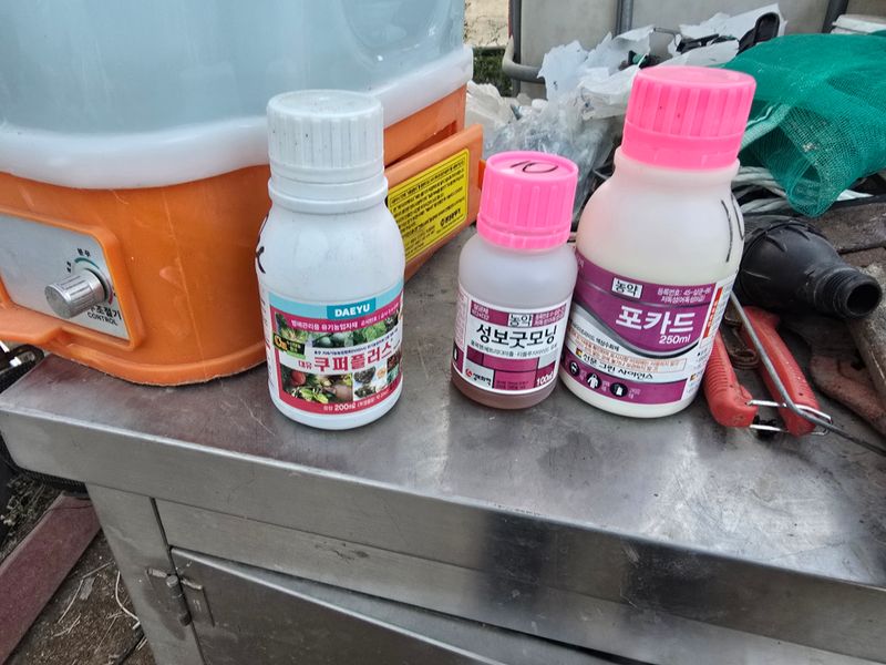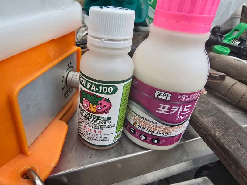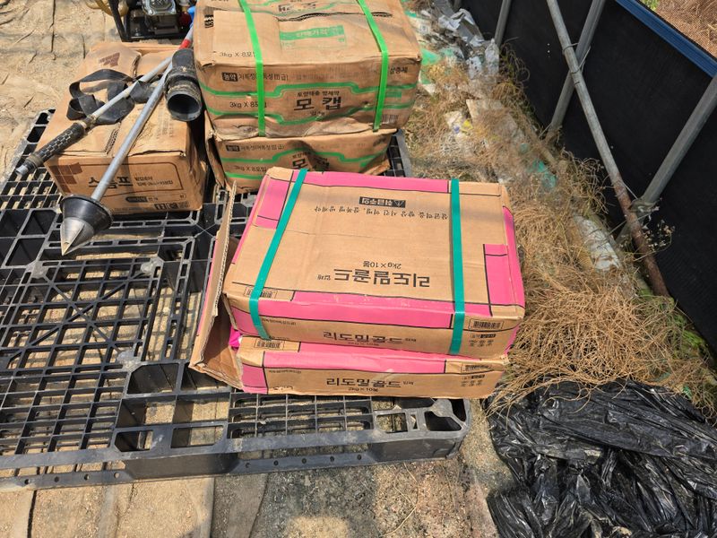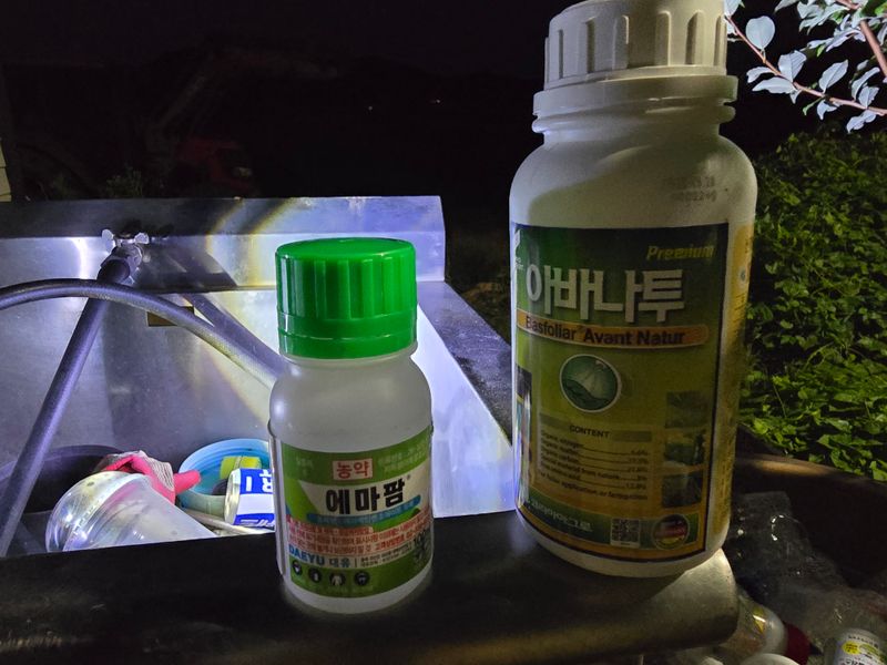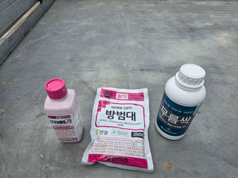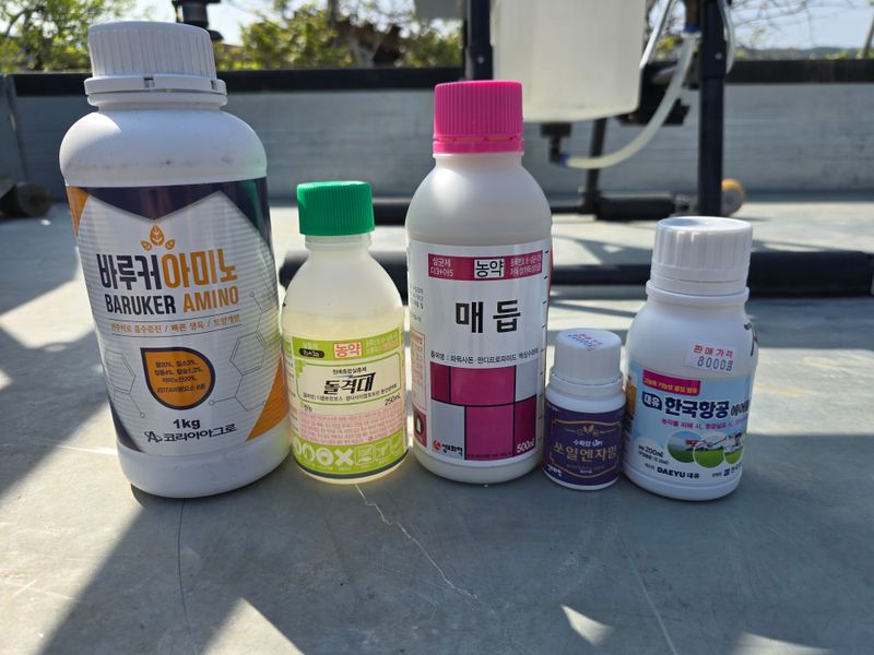 원협 에서살균제1박스 완효성비료35포사가지고옴 고추 심을데 완효성비료5포 복합비료 2포뿌림 파쇠기 세족기사다가 부착함