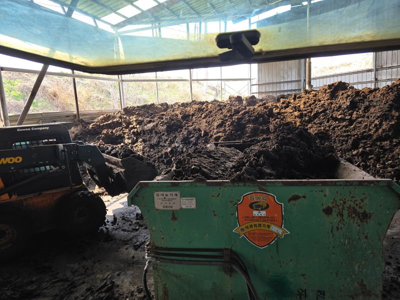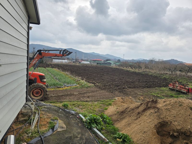 빌라엽 사무실 뒤밭에퇴비뿌림 부안농장에서 싫어다