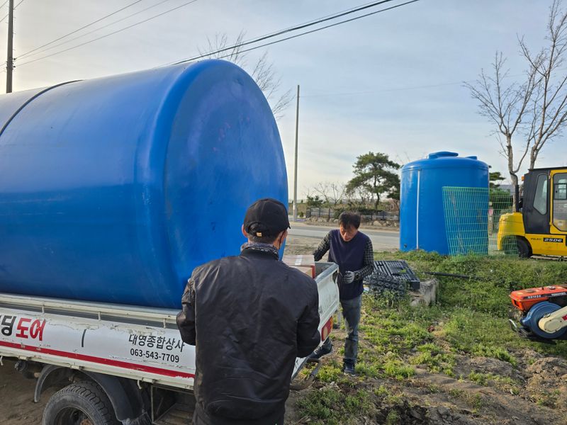 양파 밭 스프링쿨러 돌려줌 대영철물저에서 보조사업 물탱크 모터펌프 횔타 기저옴